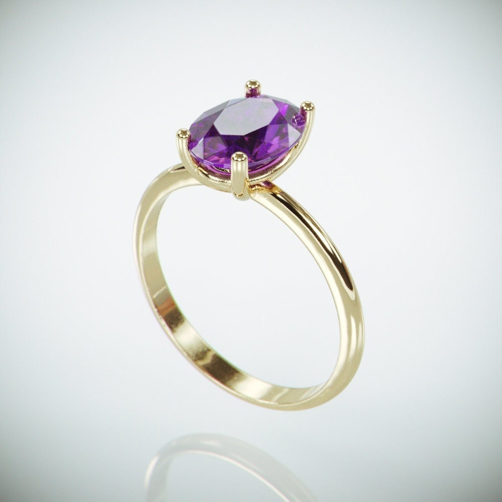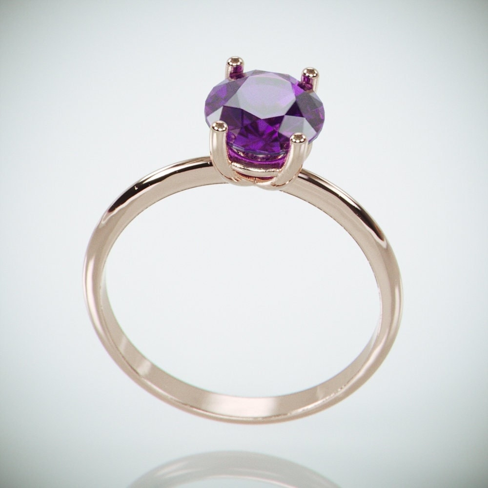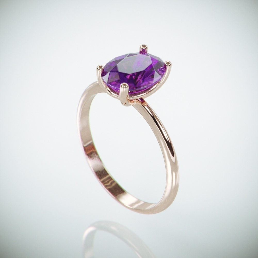 Handmade 14k Rose Gold Amethyst Ring | Rose Gold Amethyst Engagement Ring | Amethyst February Birthstone Ring