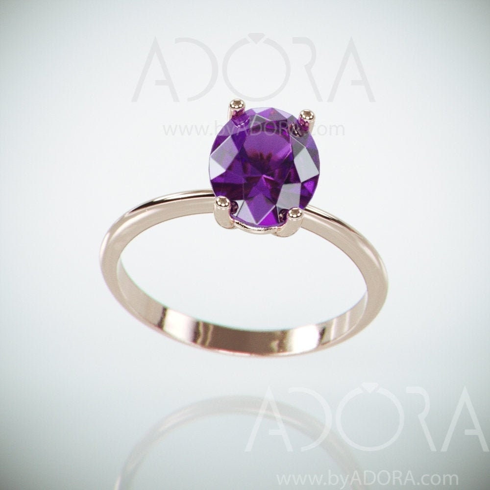 A remarkable, and bold rose gold, oval cut solitaire ring set with a natural Amethyst. A dainty Amethyst ring, no one can ignore. If you are looking for something exceptional, this ring is for you!