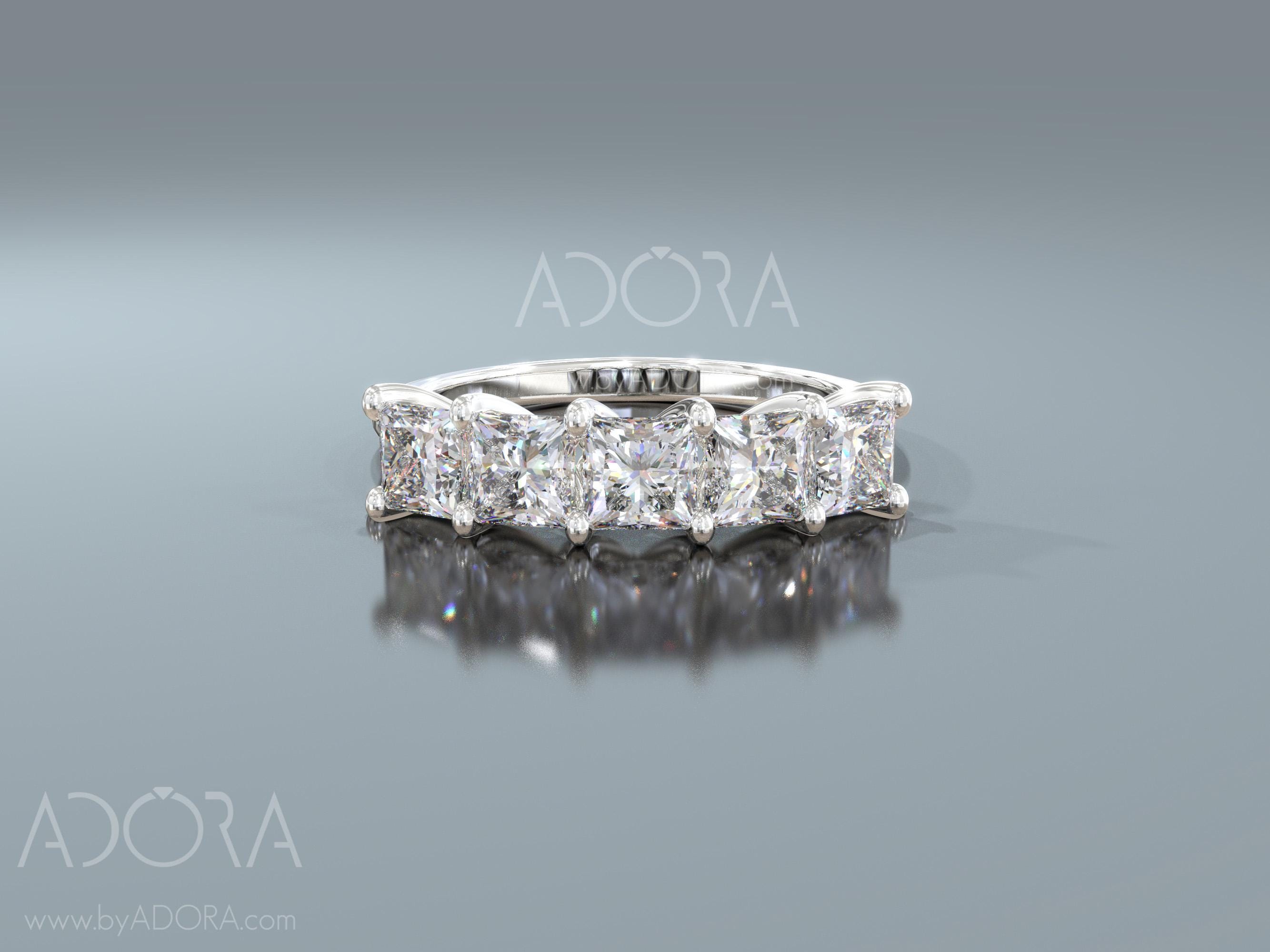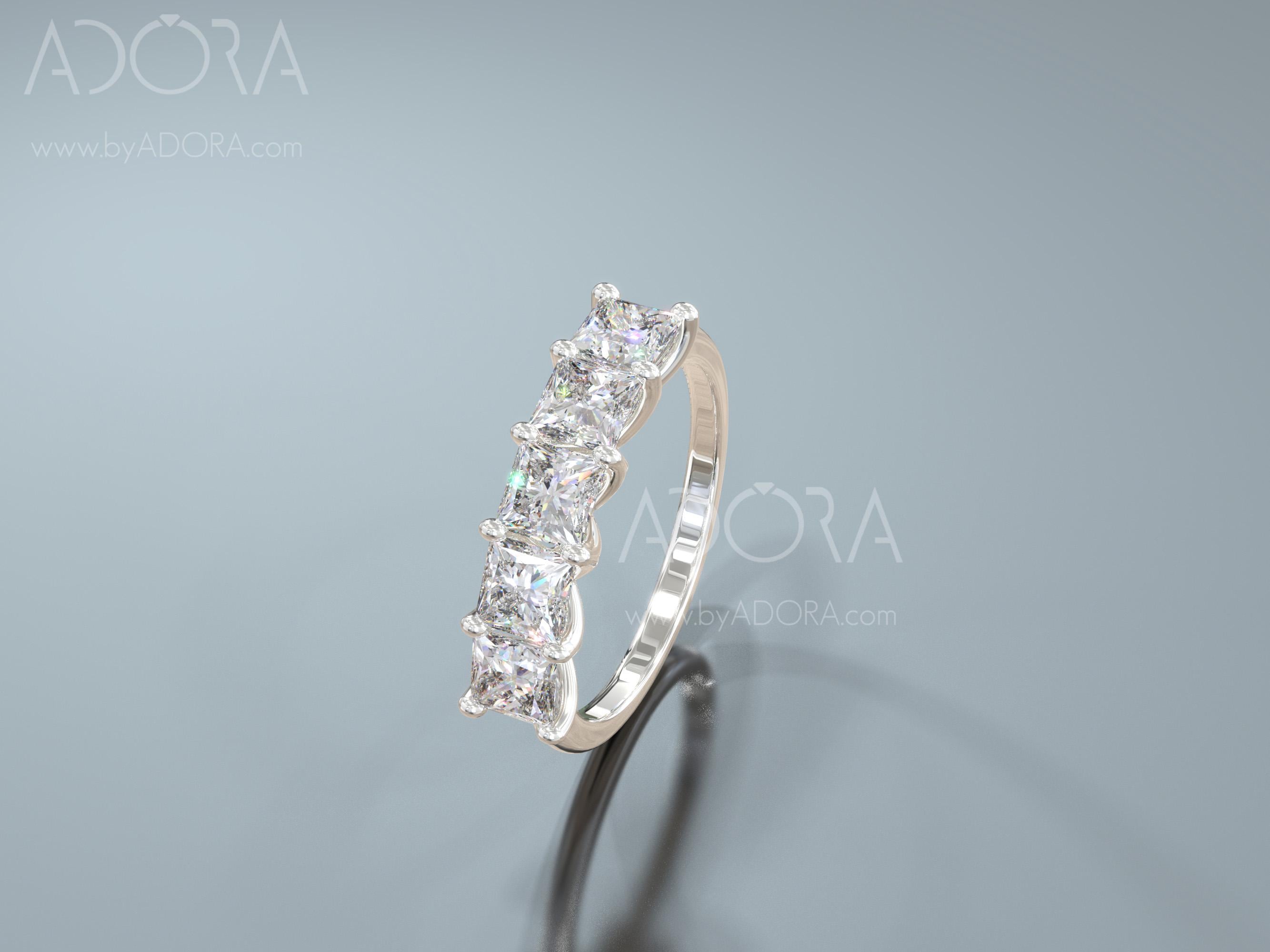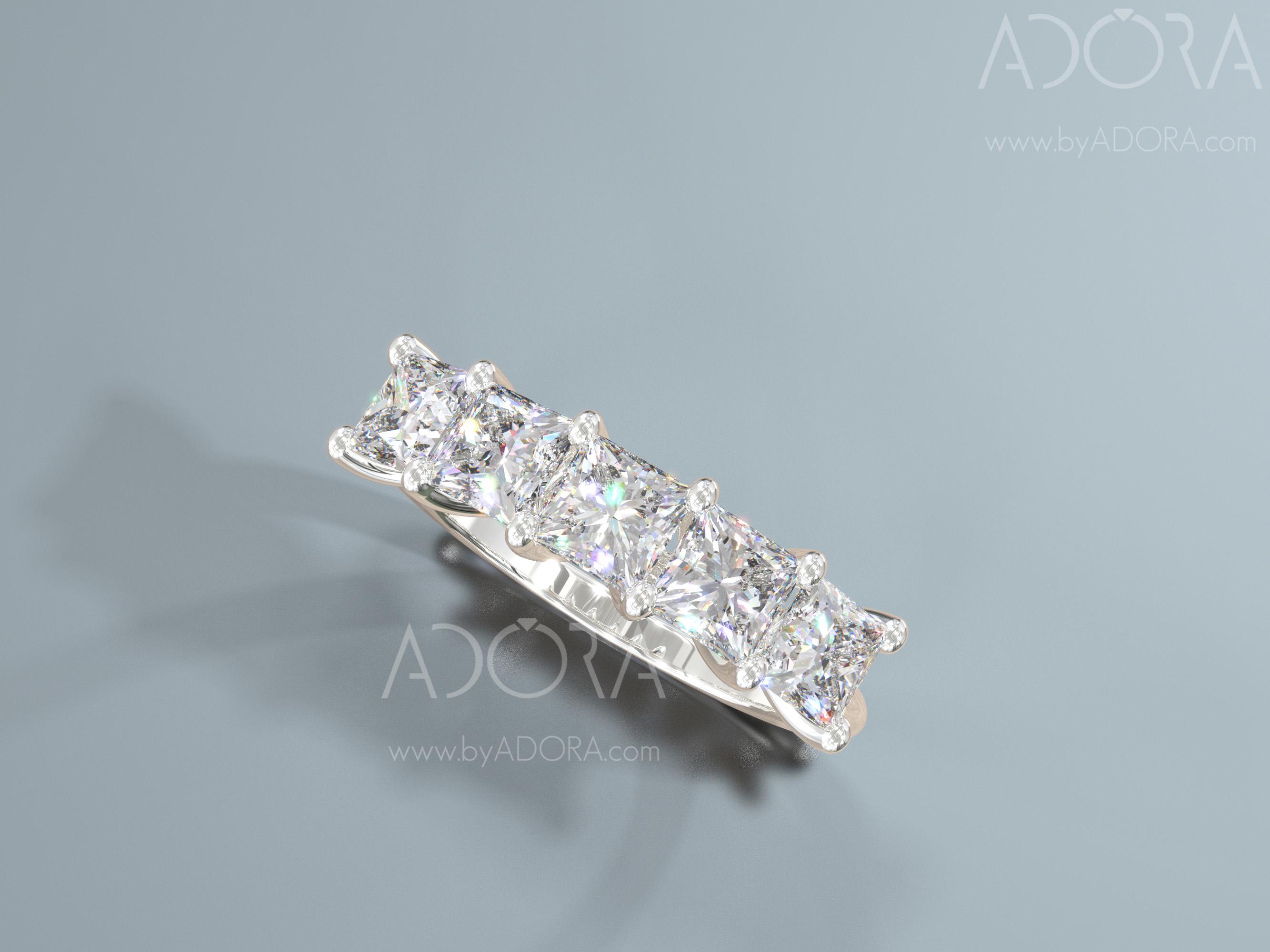 A timeless 5 stone half eternity ring set with Lab grown princess cut diamonds.