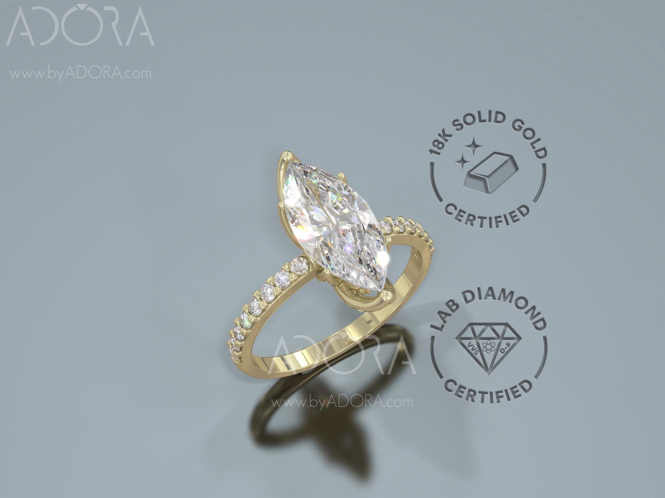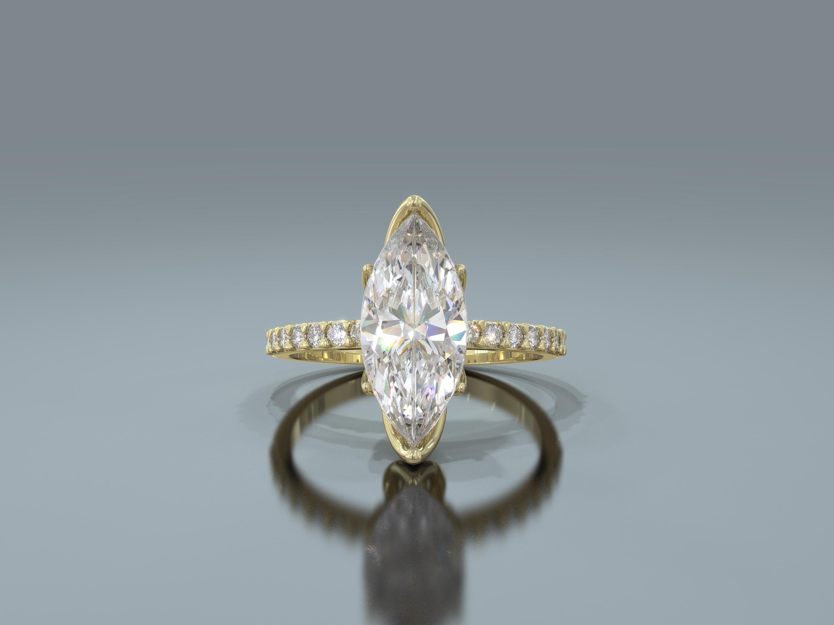 18K Pavé Marquise Cut Diamond Engagement Ring | 18k gold Pavé engagement ring set with Marquise cut lab grown diamond.