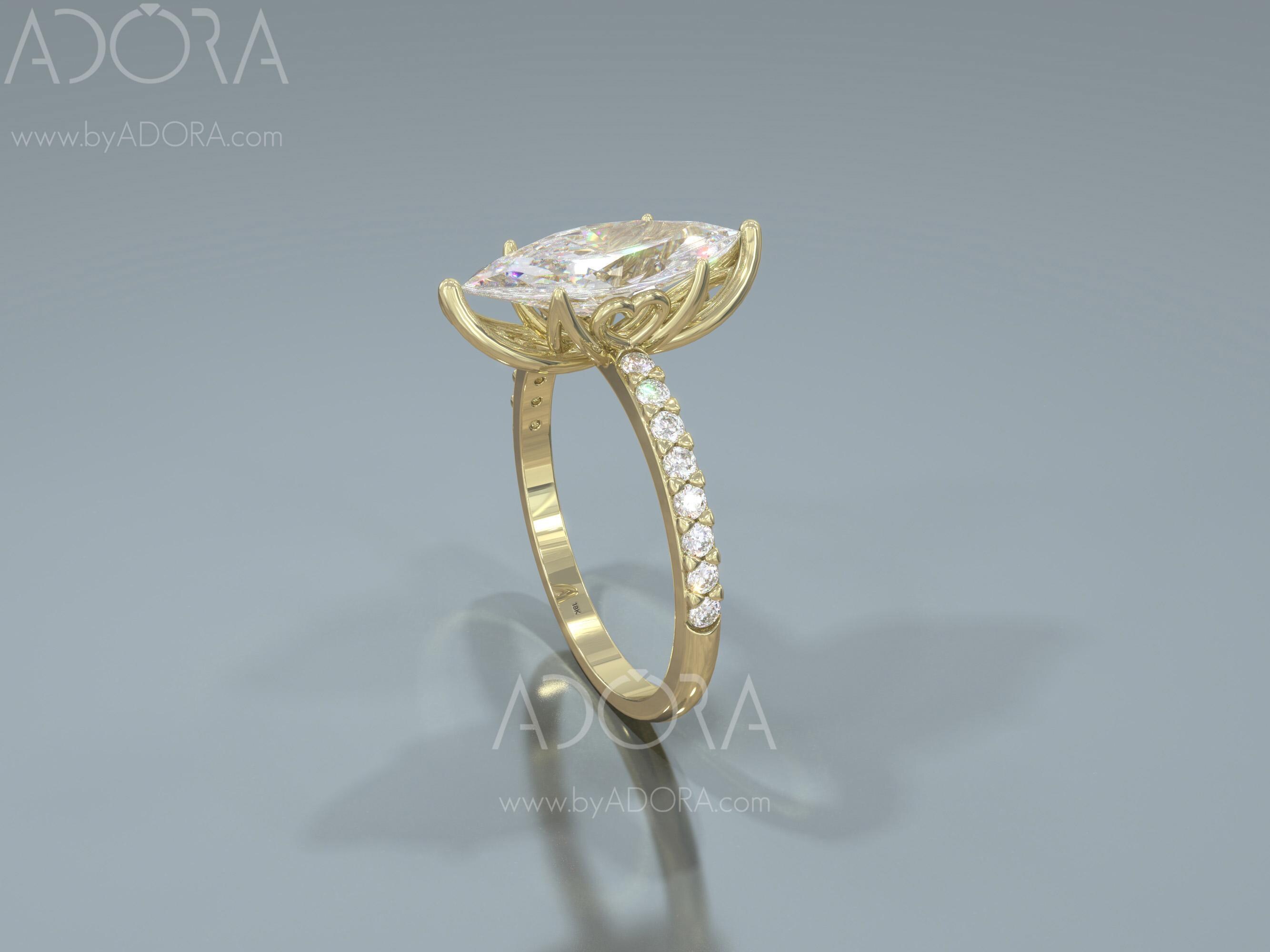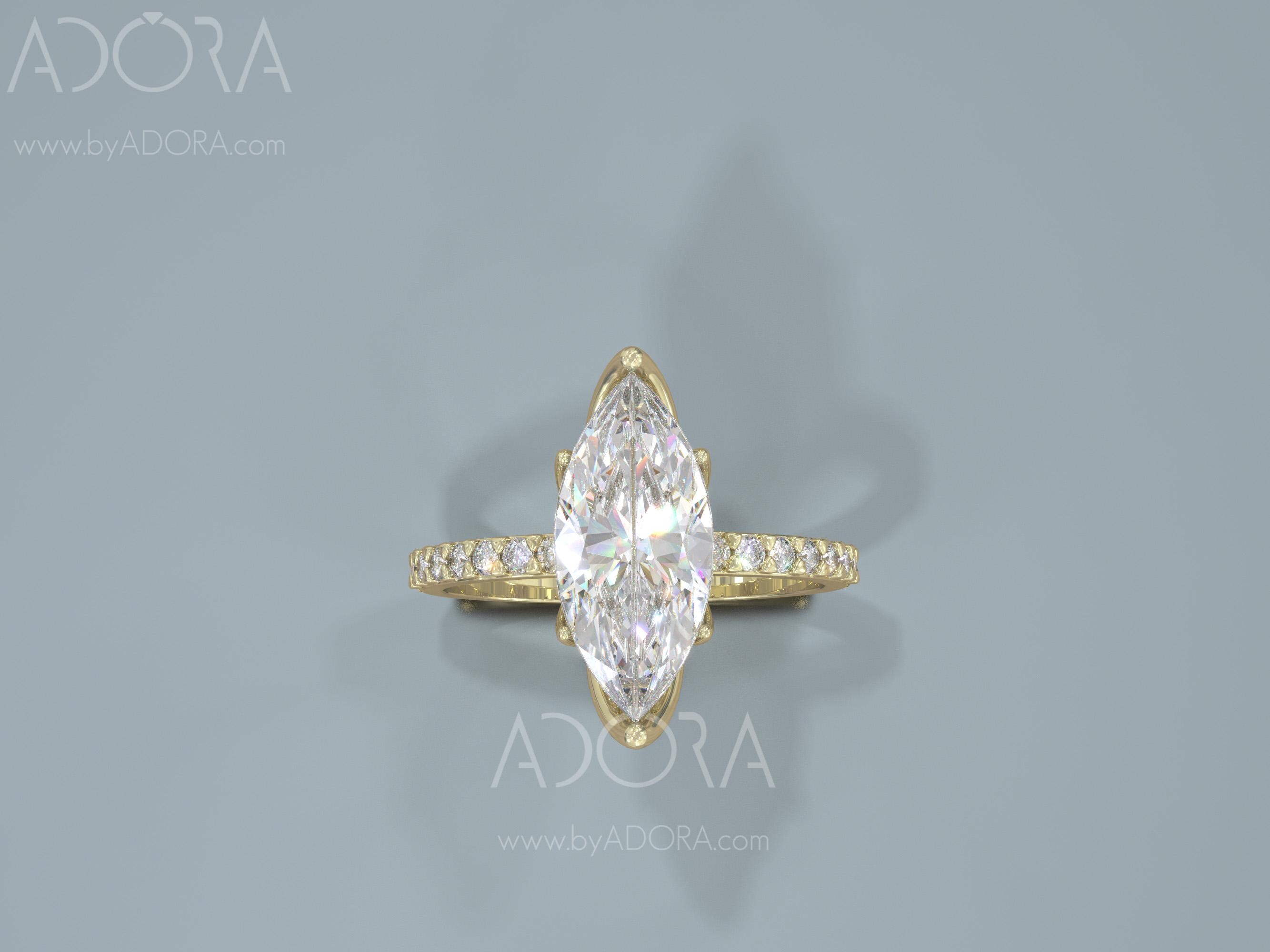 A timeless 18k solid gold Marquise Pavé engagement ring.