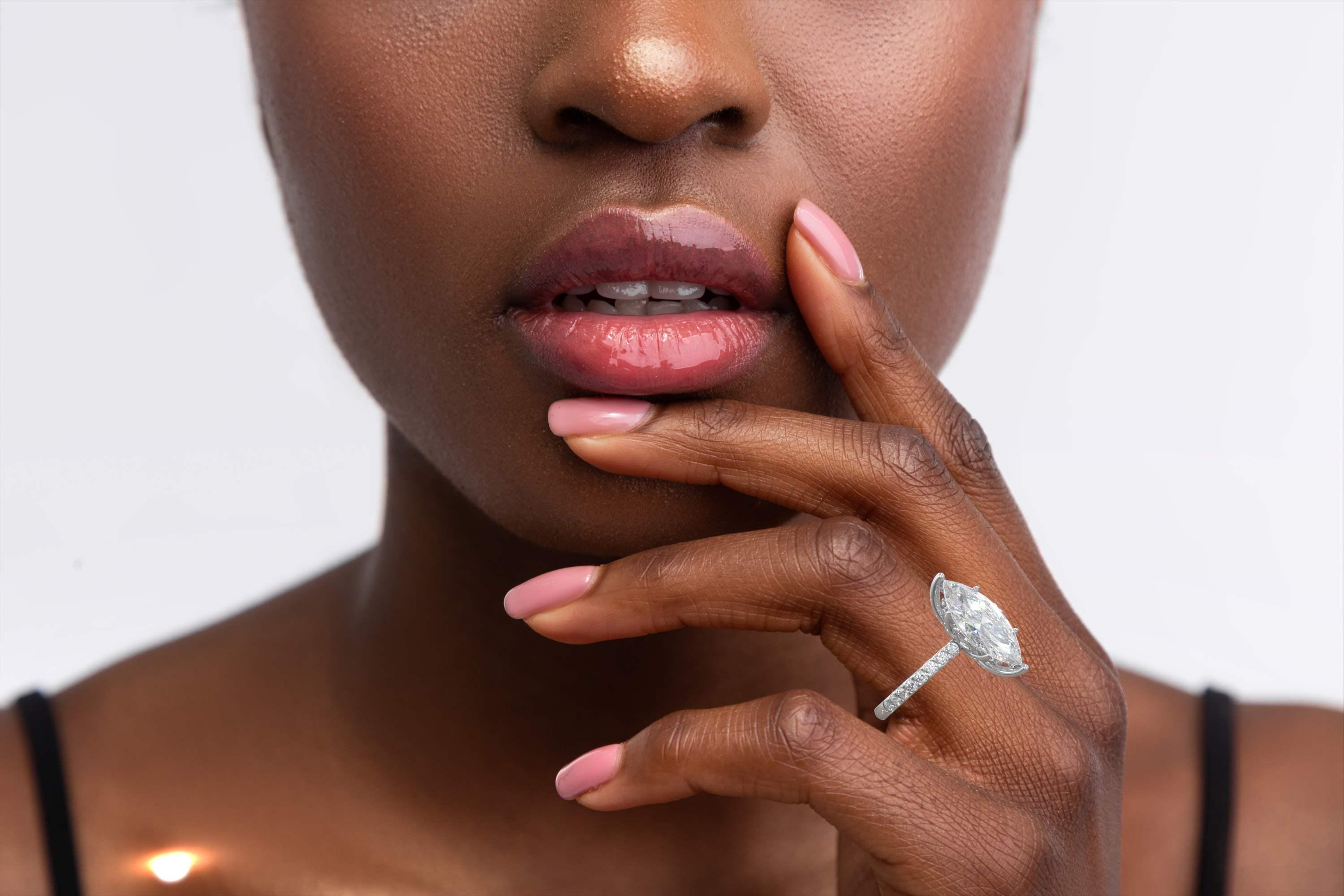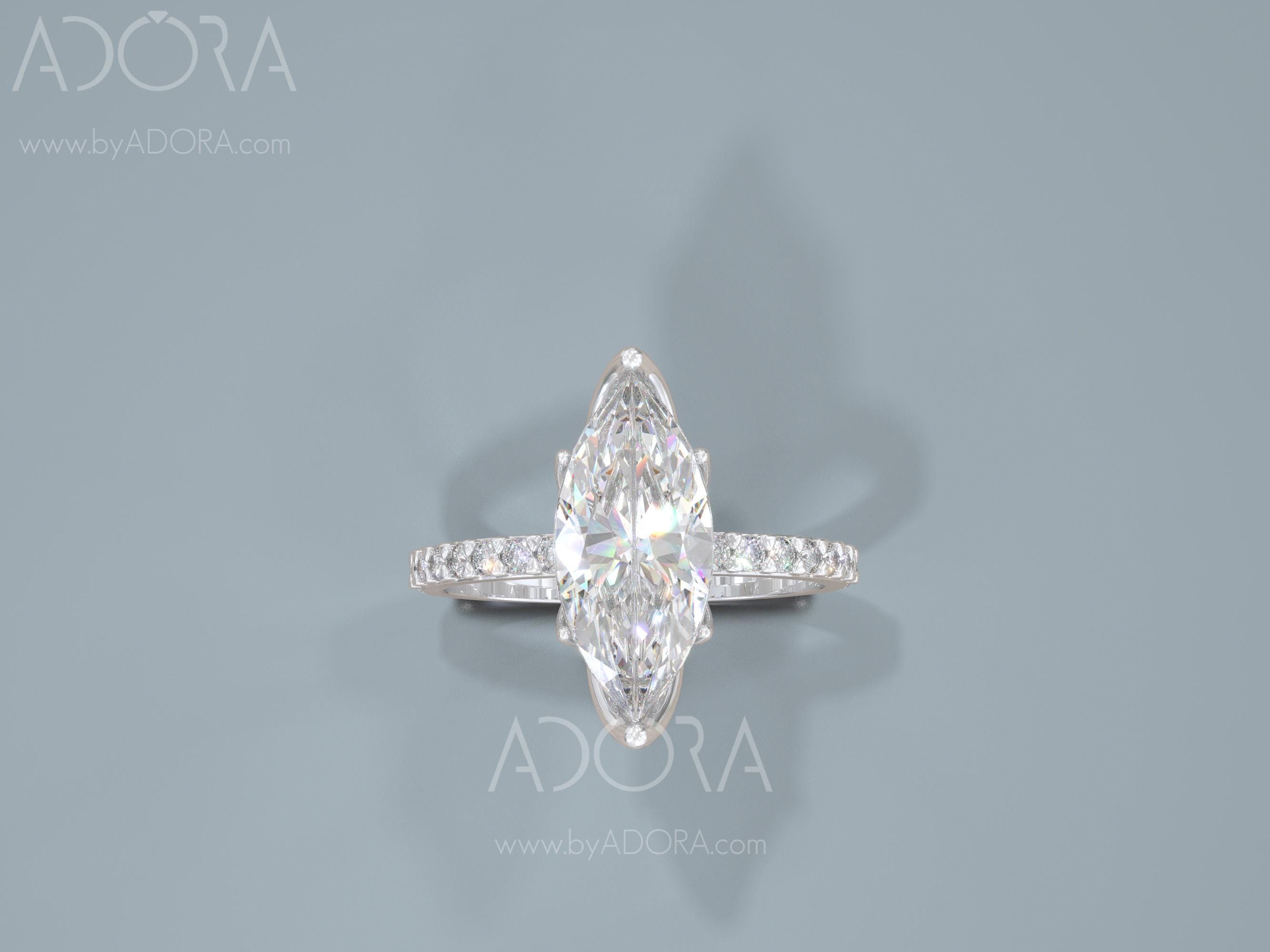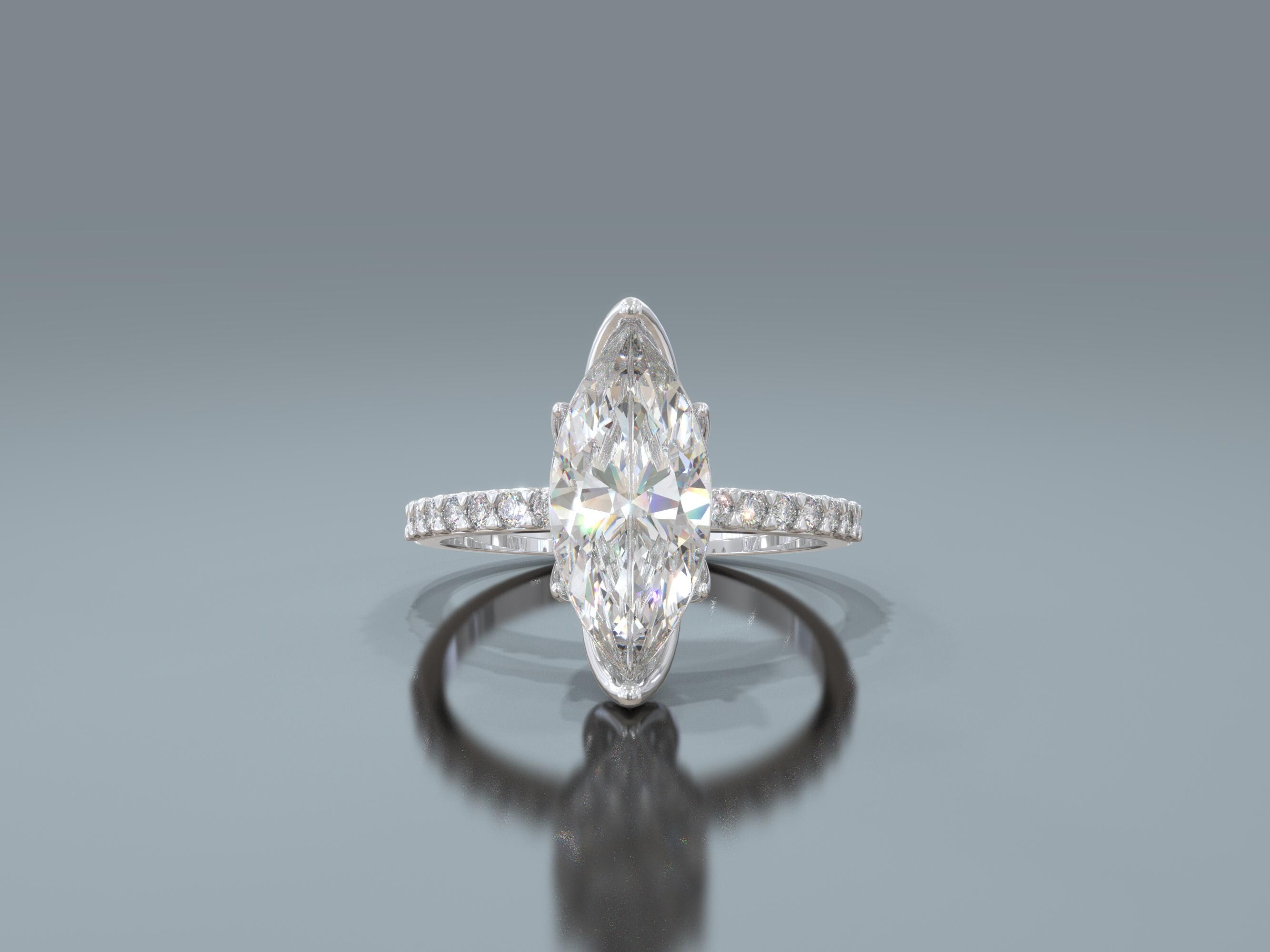 A timeless 18k solid white gold Marquise Pavé engagement ring.