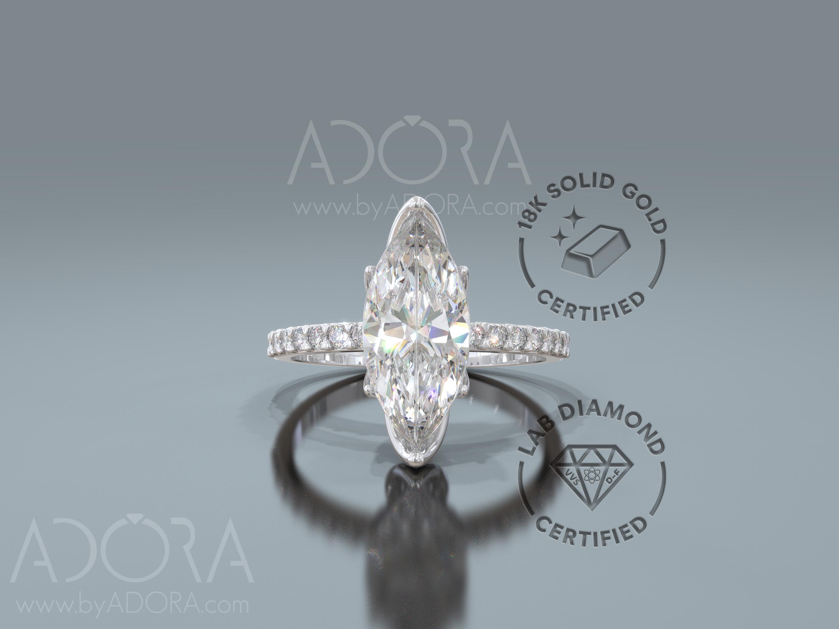 18K Pavé Marquise Cut Diamond Engagement Ring | 18k white gold Pavé engagement ring set with Marquise cut lab grown diamond.