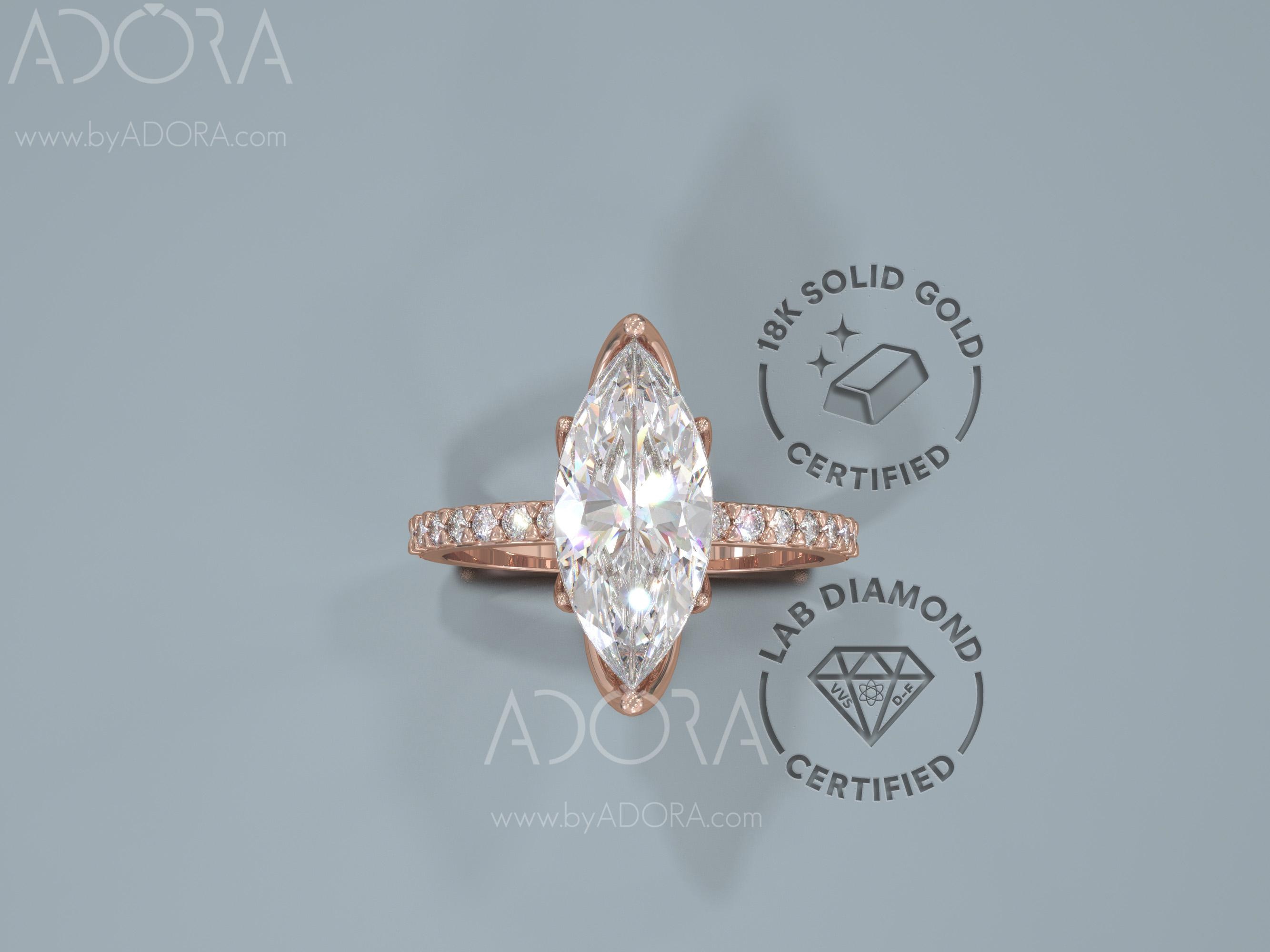 18K Pavé Marquise Cut Diamond Engagement Ring | 18k rose gold Pavé engagement ring set with Marquise cut lab grown diamond.
