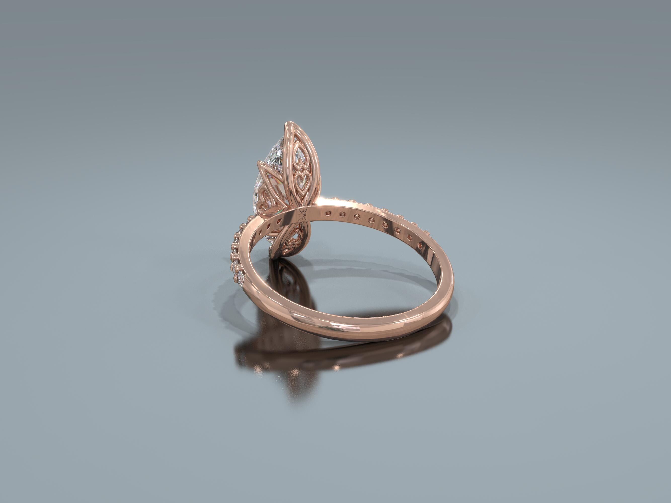 A timeless 18k solid rose gold Marquise Pavé engagement ring.
