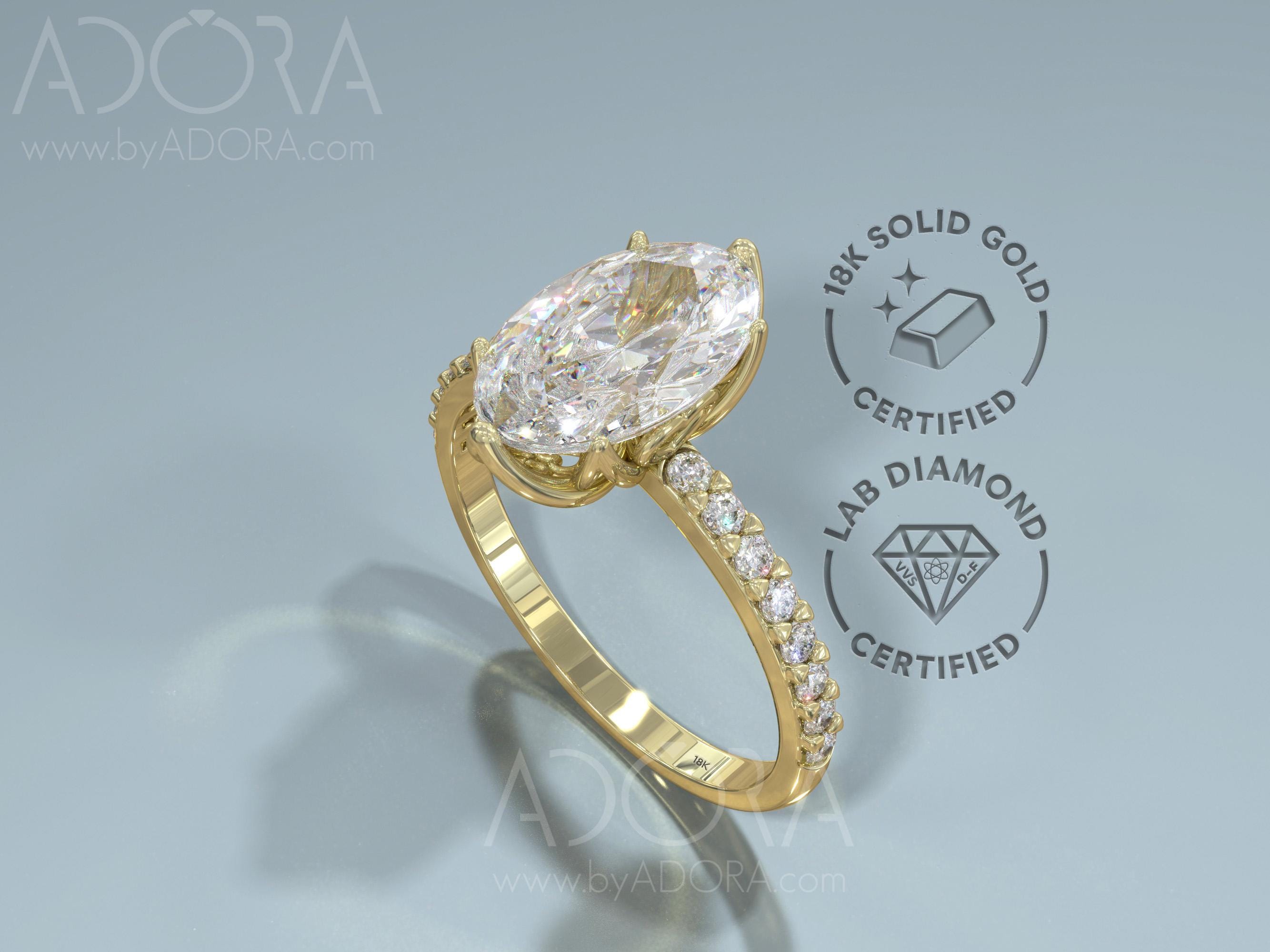 18K Pavé Oval Cut Diamond Engagement Ring | 18k gold Pavé engagement ring set with Oval cut lab grown diamond.