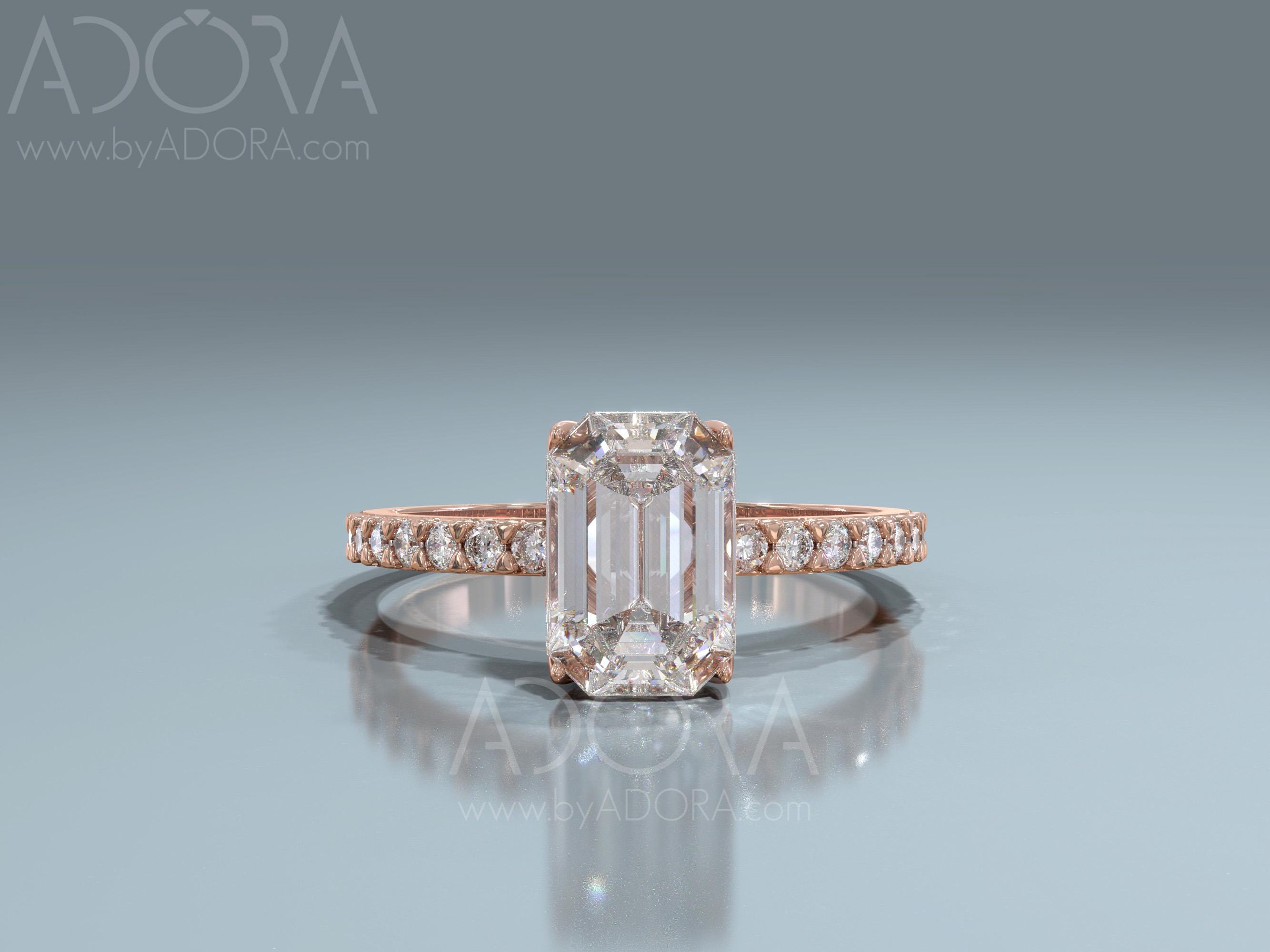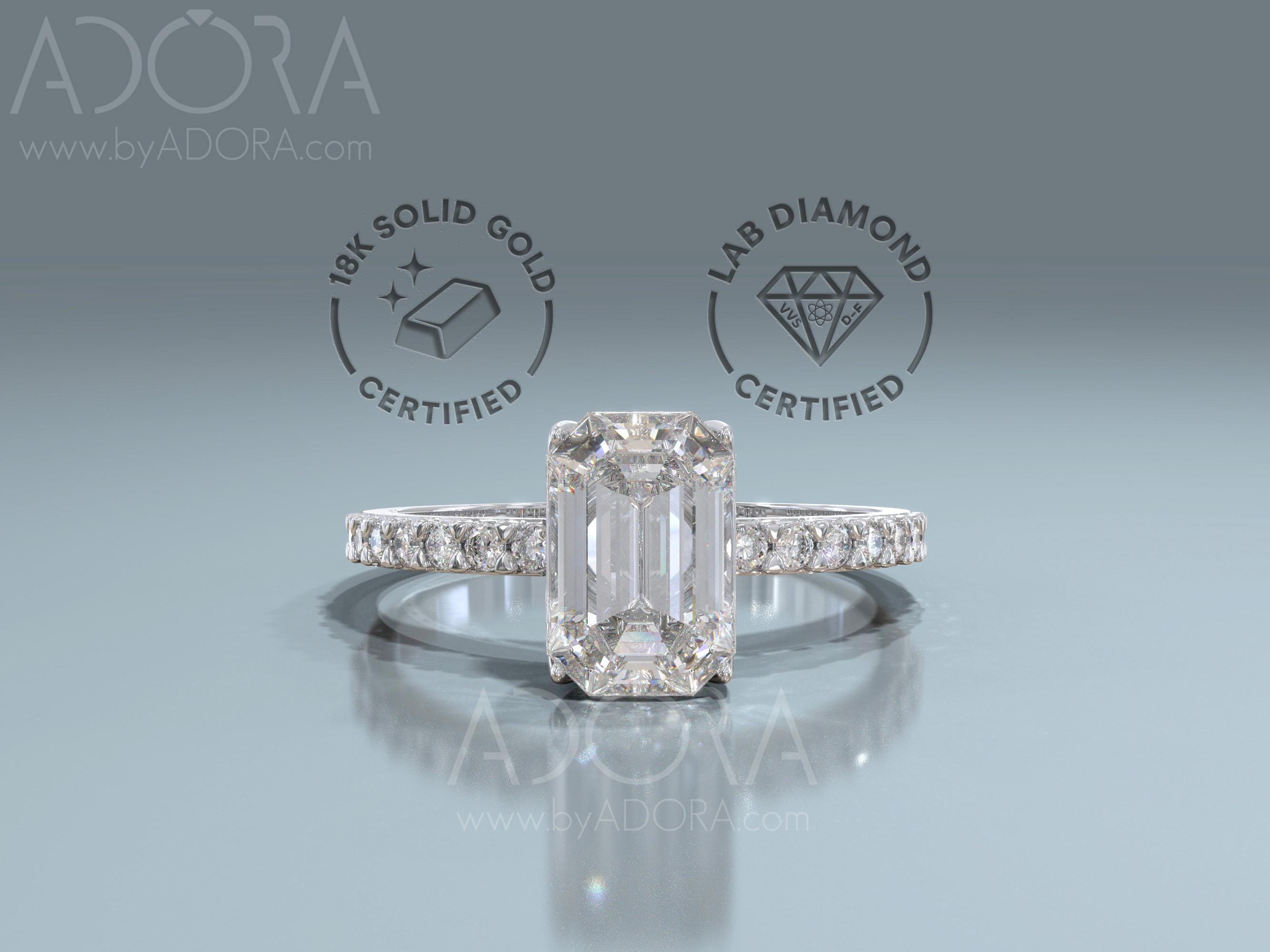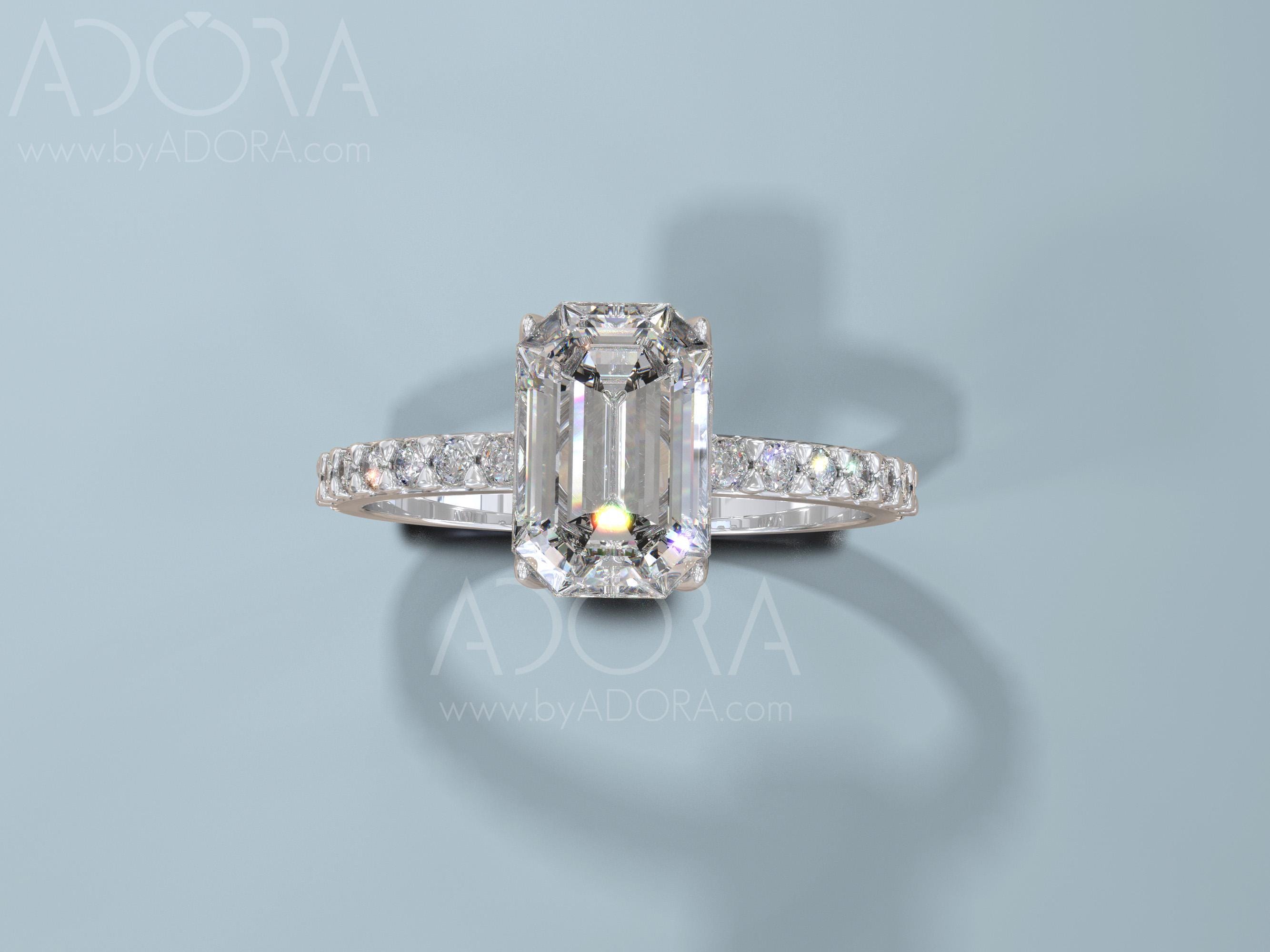 18K Pavé Emerald Cut Diamond Engagement Ring | 14k white gold Pavé engagement ring set with Emerald cut lab grown diamond.