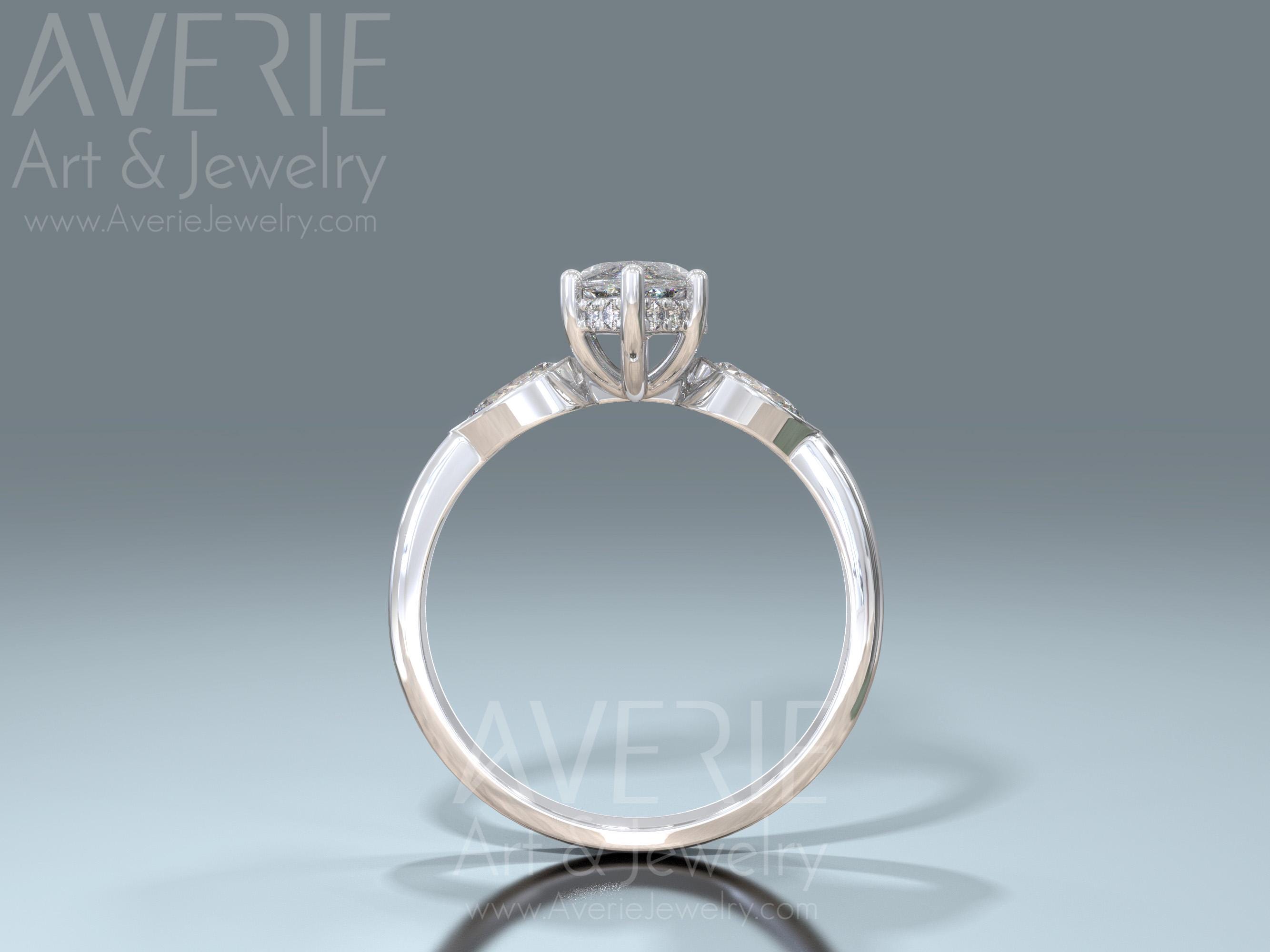 An elegant and romantic Marquise cut ring set with a lab grown diamond center stone and brilliant accent diamonds. The bezel was design as a hidden Halo to add more sparkle the natural beauty of the diamond, creating a ring no one can ignore. If you are looking for something exceptional, this ring is for you!