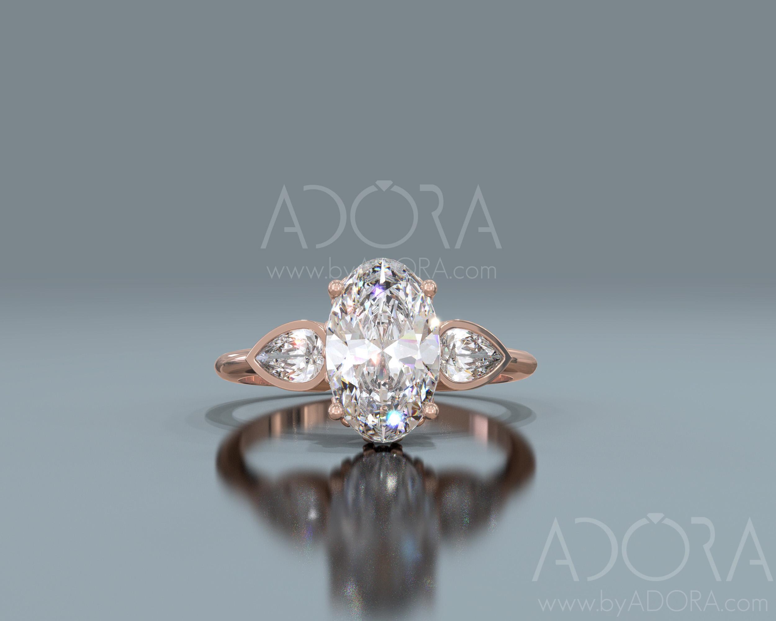 From each side of the center stone I will set a pear cut lab grown diamonds.