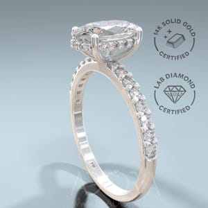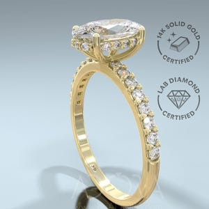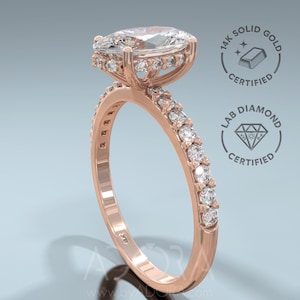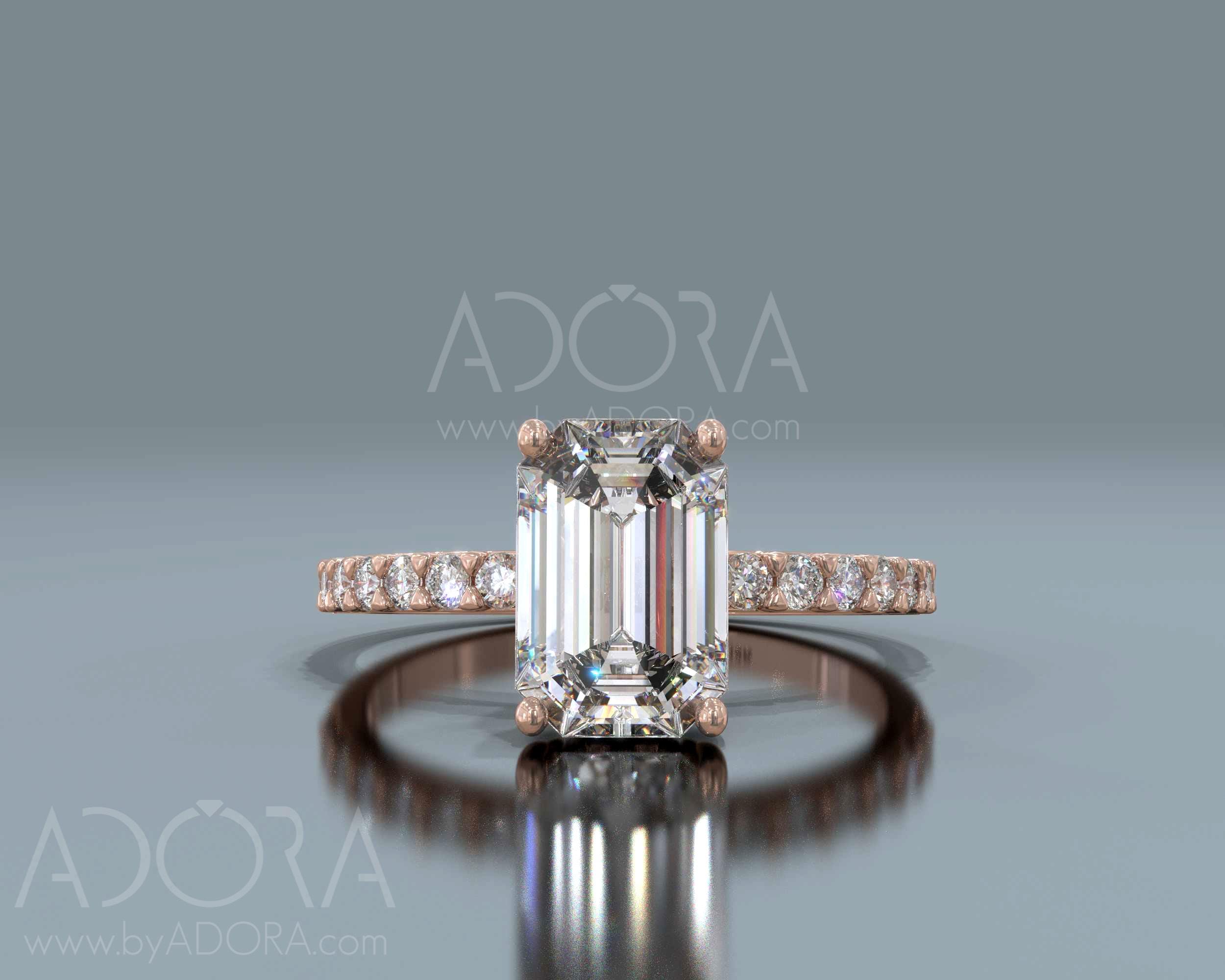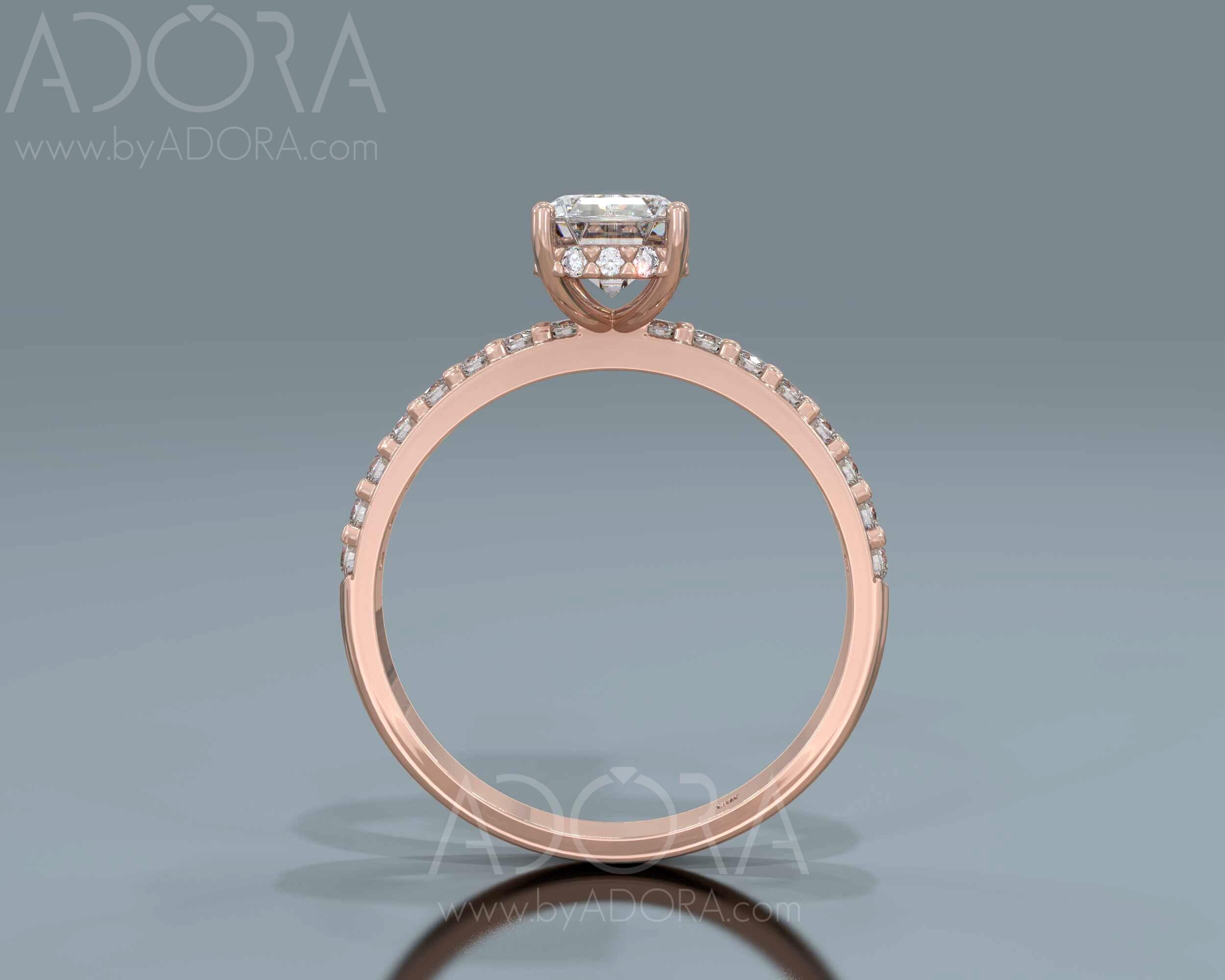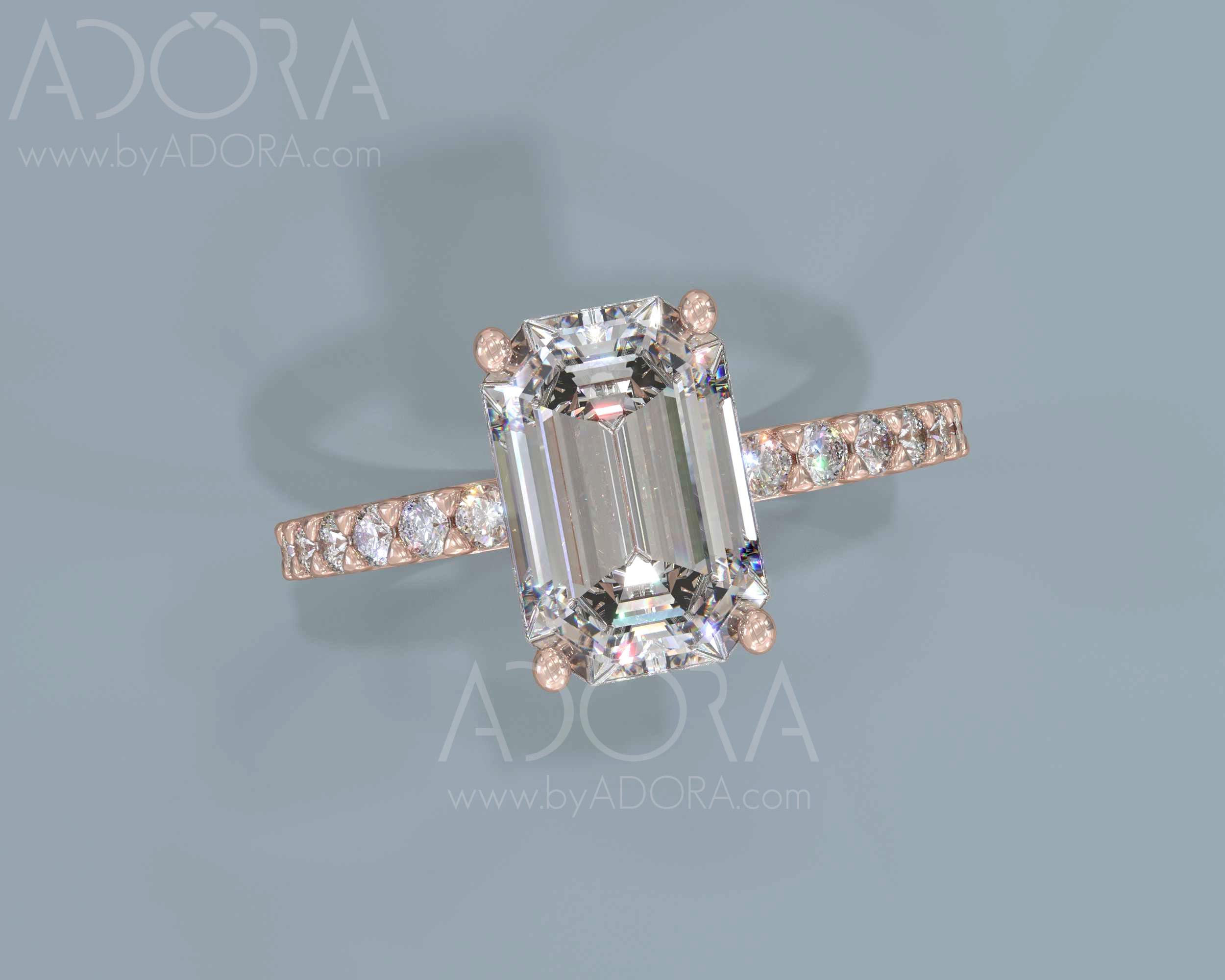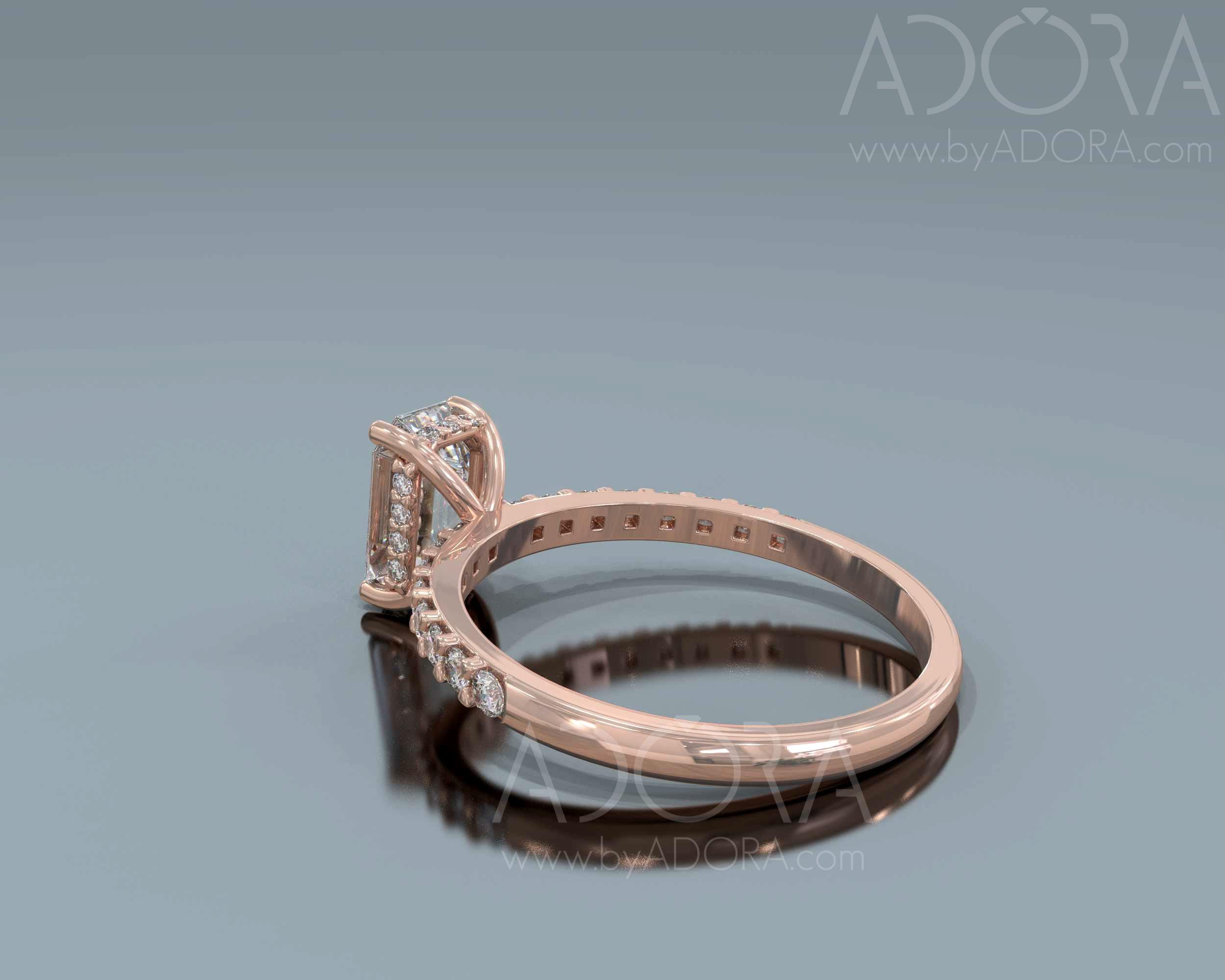 14K Pavé Hidden Halo Emerald Cut Diamond Engagement Ring | 14k rose gold Pavé engagement ring set with Emerald cut lab grown diamond.