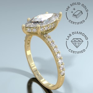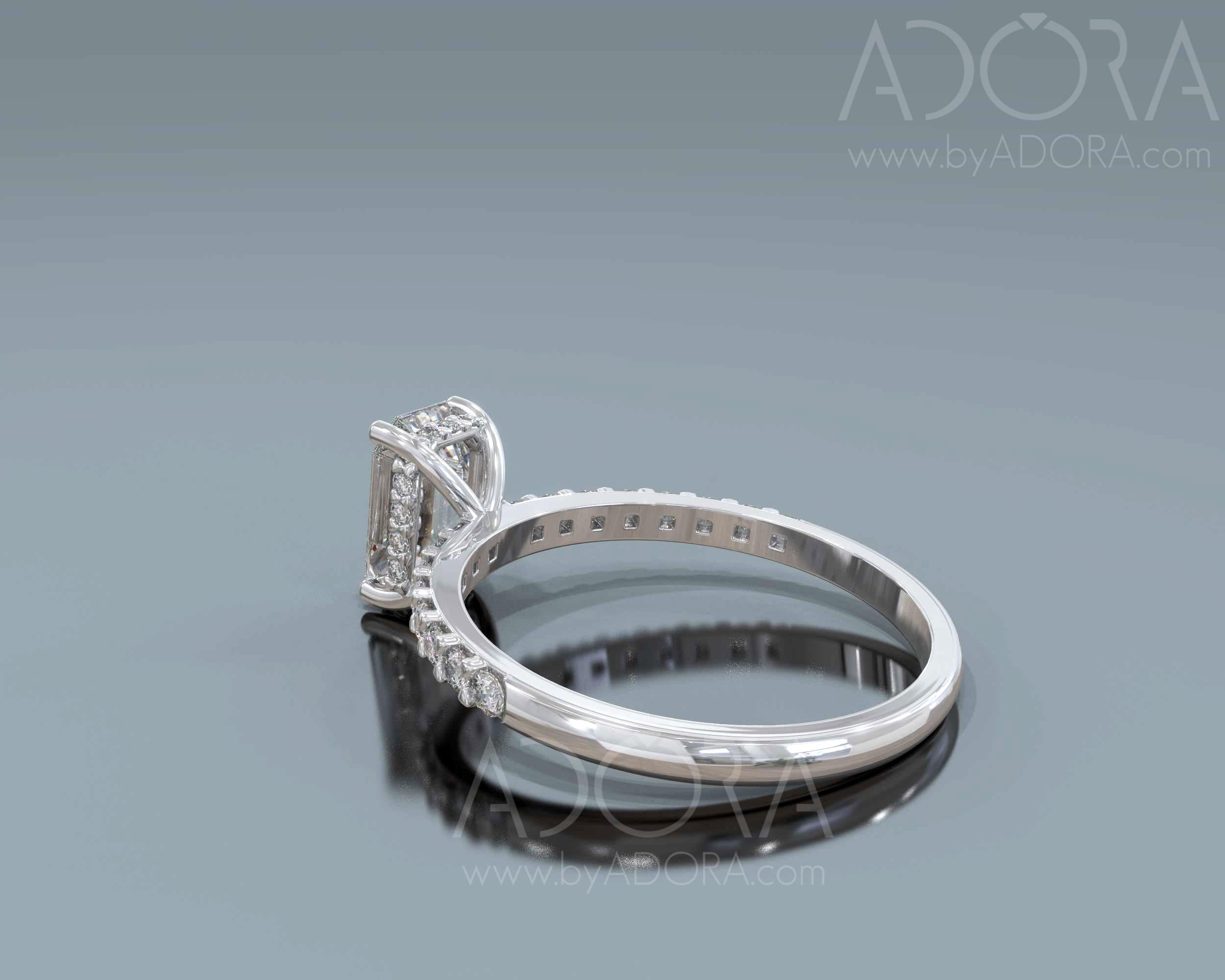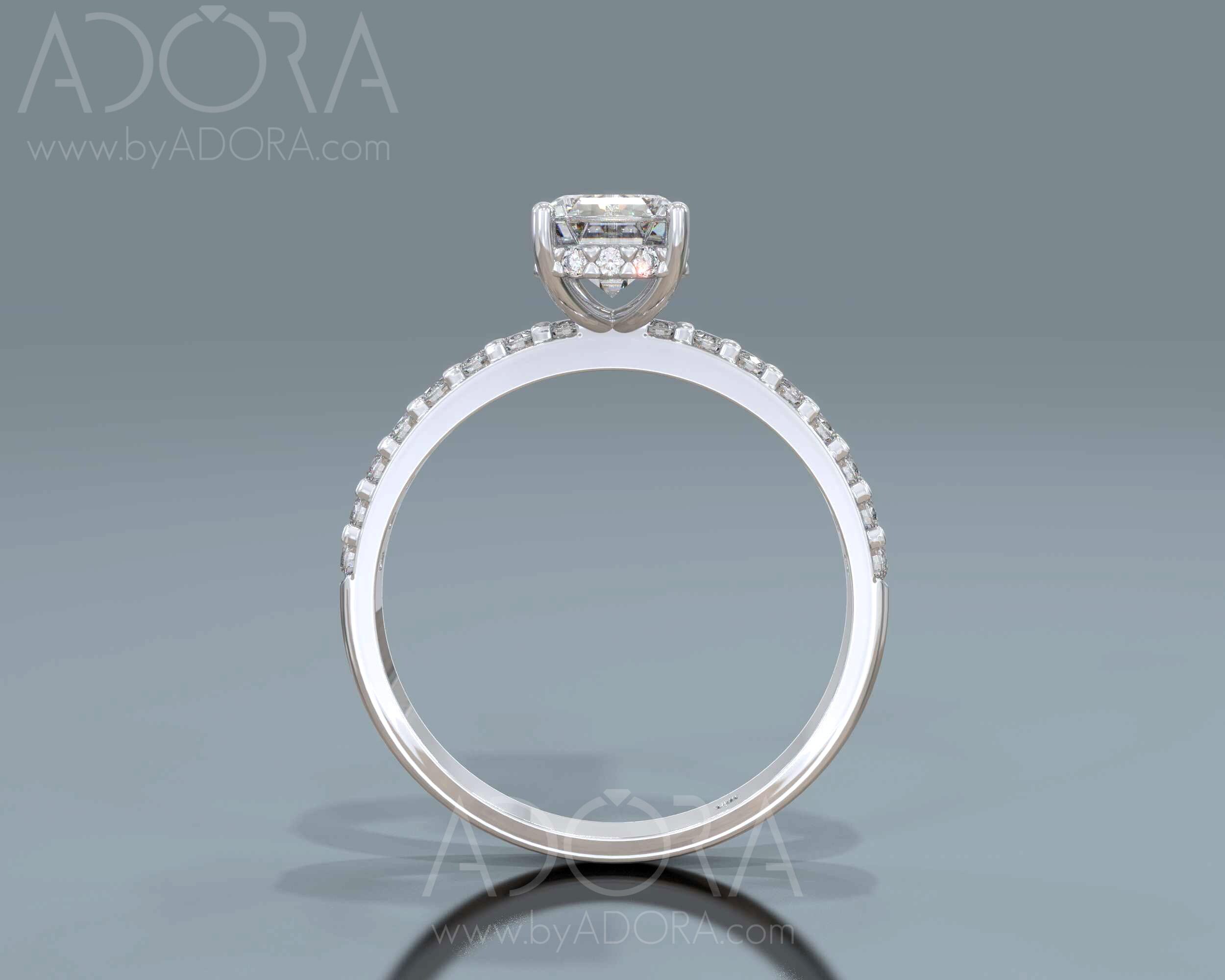 14K Pavé Hidden Halo Emerald Cut Diamond Engagement Ring | 14k white gold Pavé engagement ring set with Emerald cut lab grown diamond.