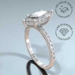 An elegant and romantic Emerald cut ring set with a lab grown diamond center stone and brilliant accent diamonds. The bezel was design as a hidden Halo to add more sparkle the natural beauty of the diamond, creating a ring no one can ignore. If you are looking for something exceptional, this ring is for you!
