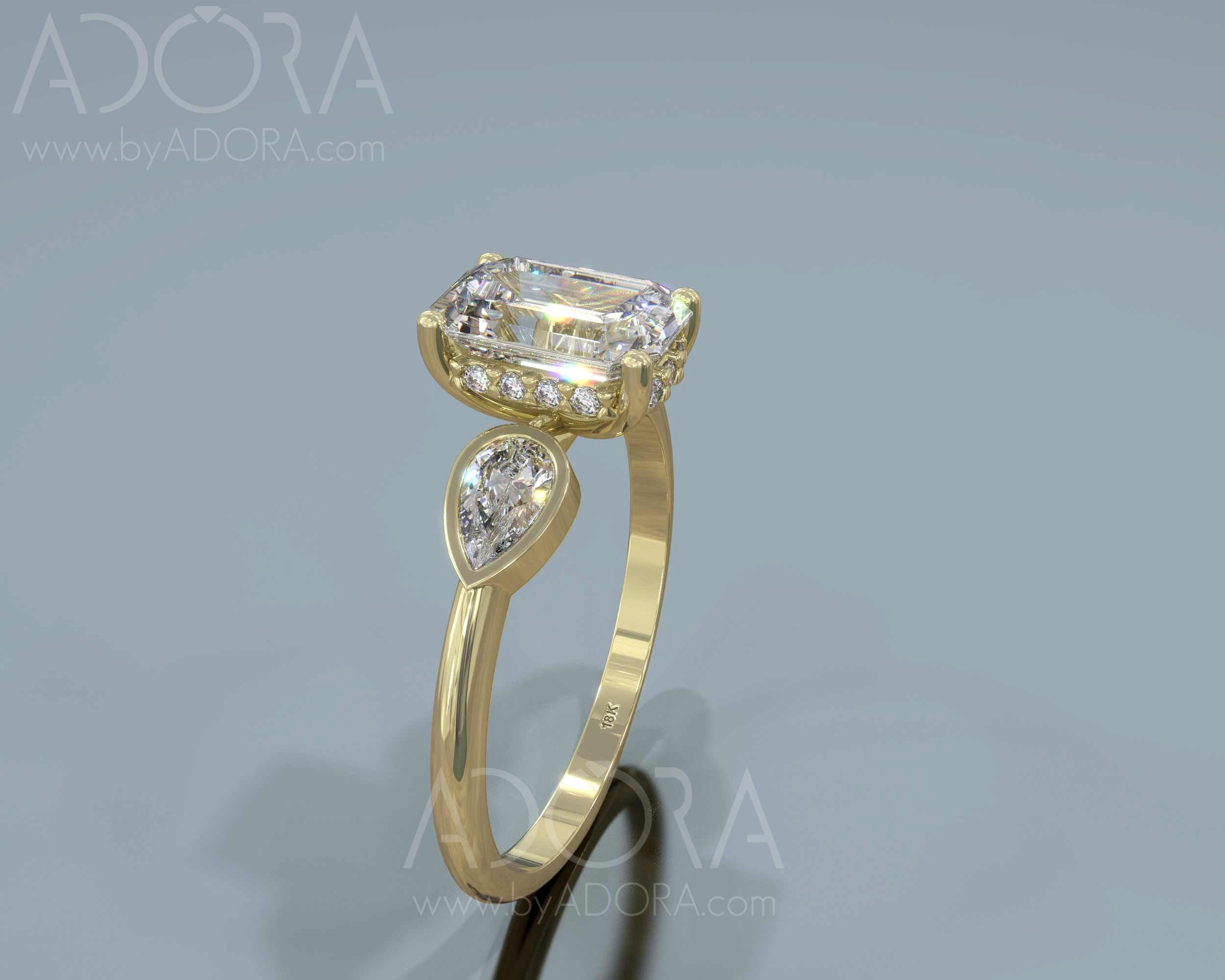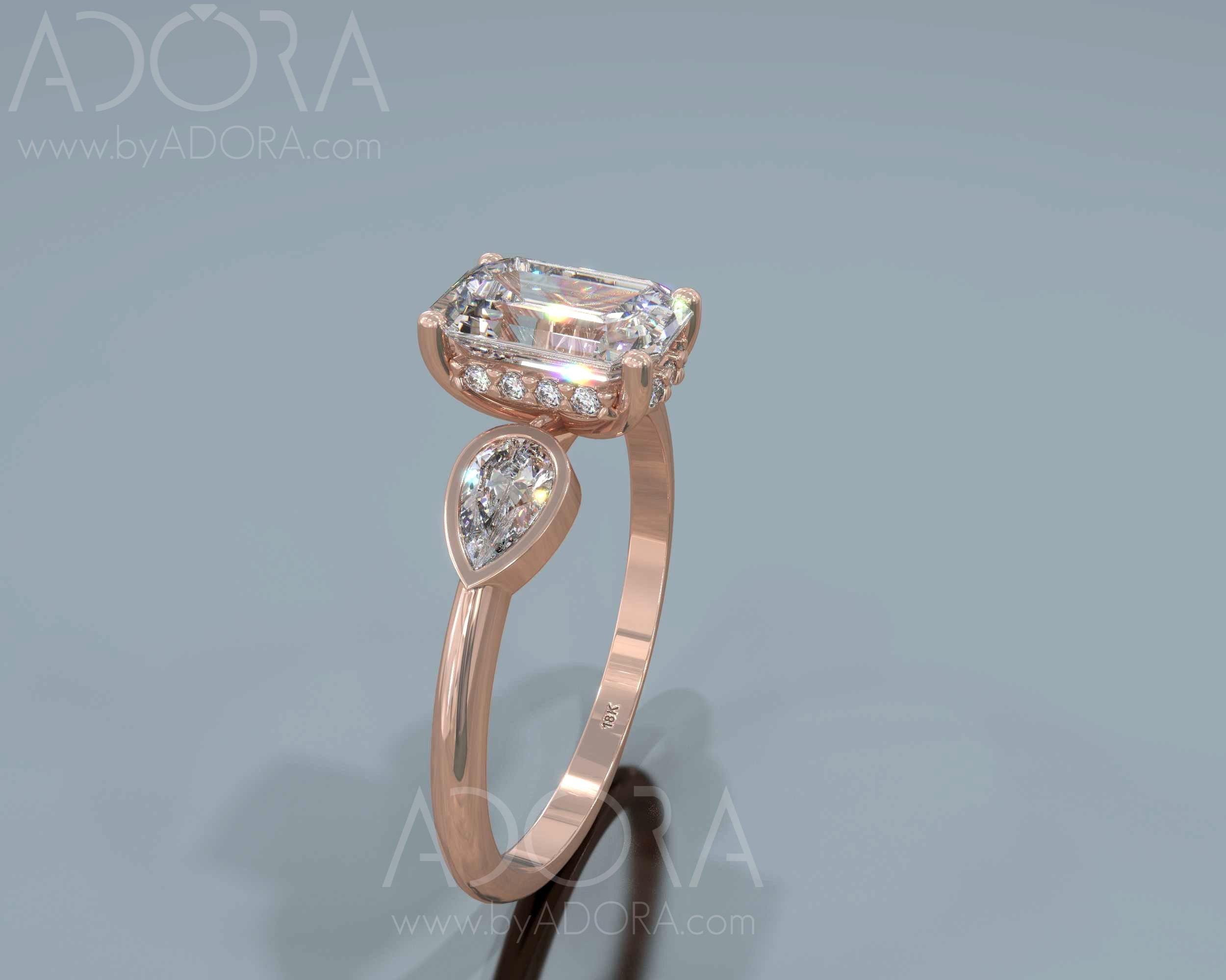 From each side of the center stone I will set a pear cut lab grown diamonds.