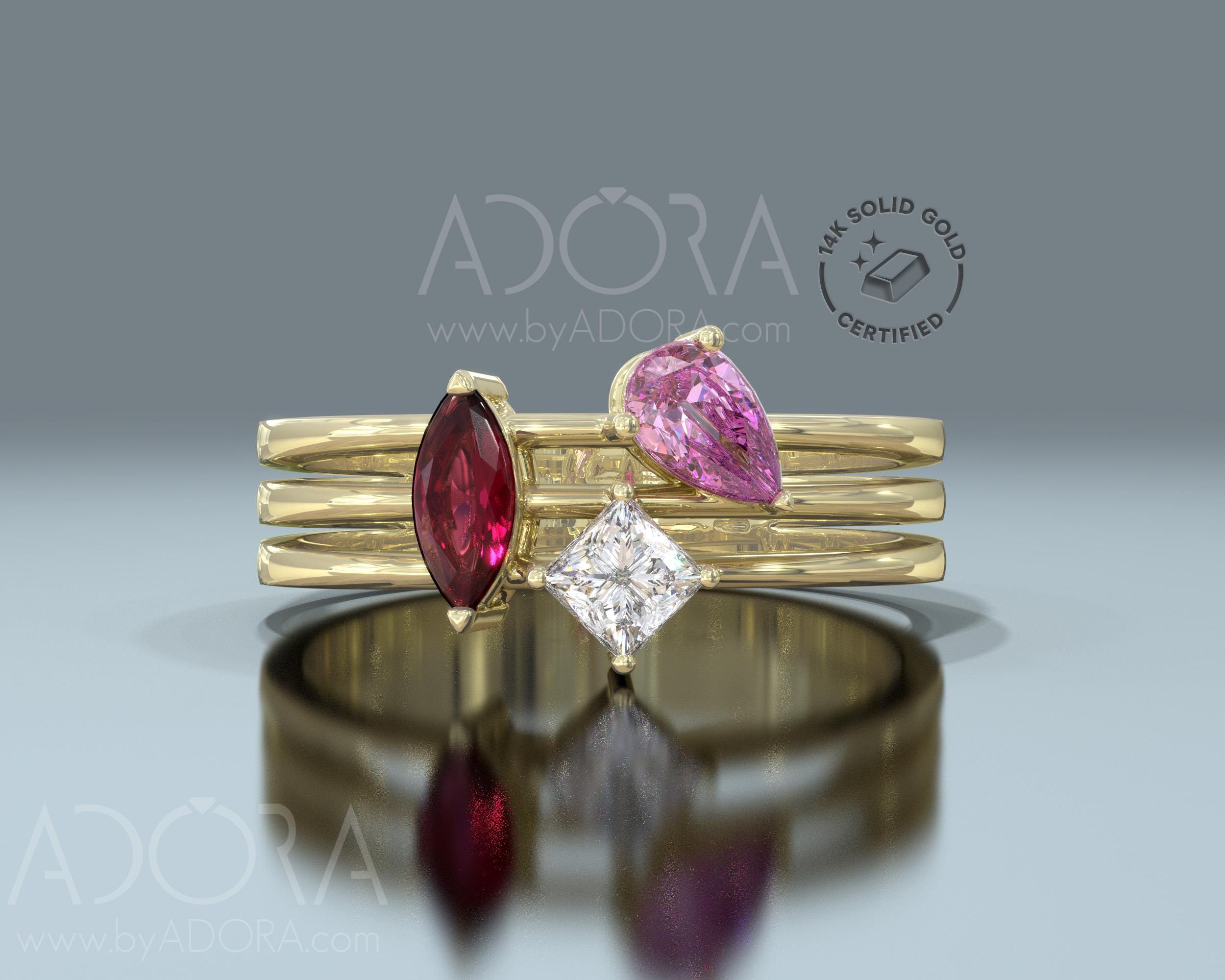 ✧ I will set the ring with 3 gems in a delicate bezel setting: