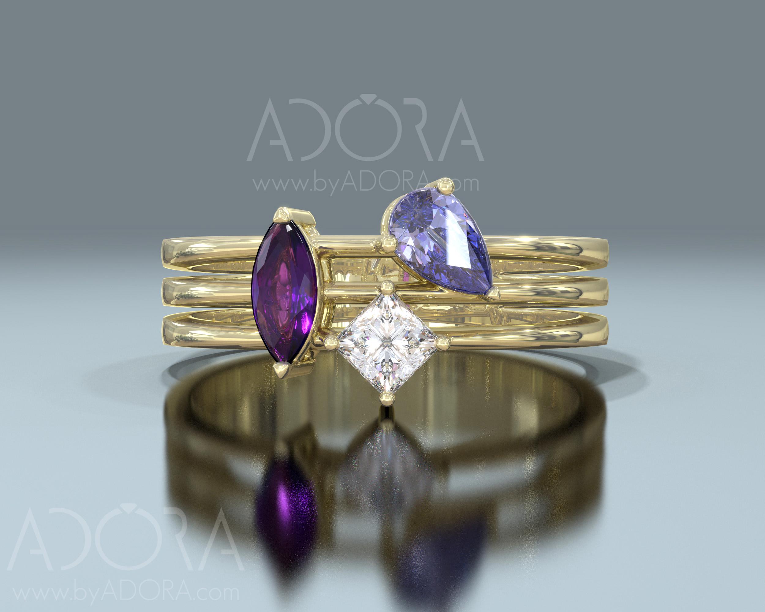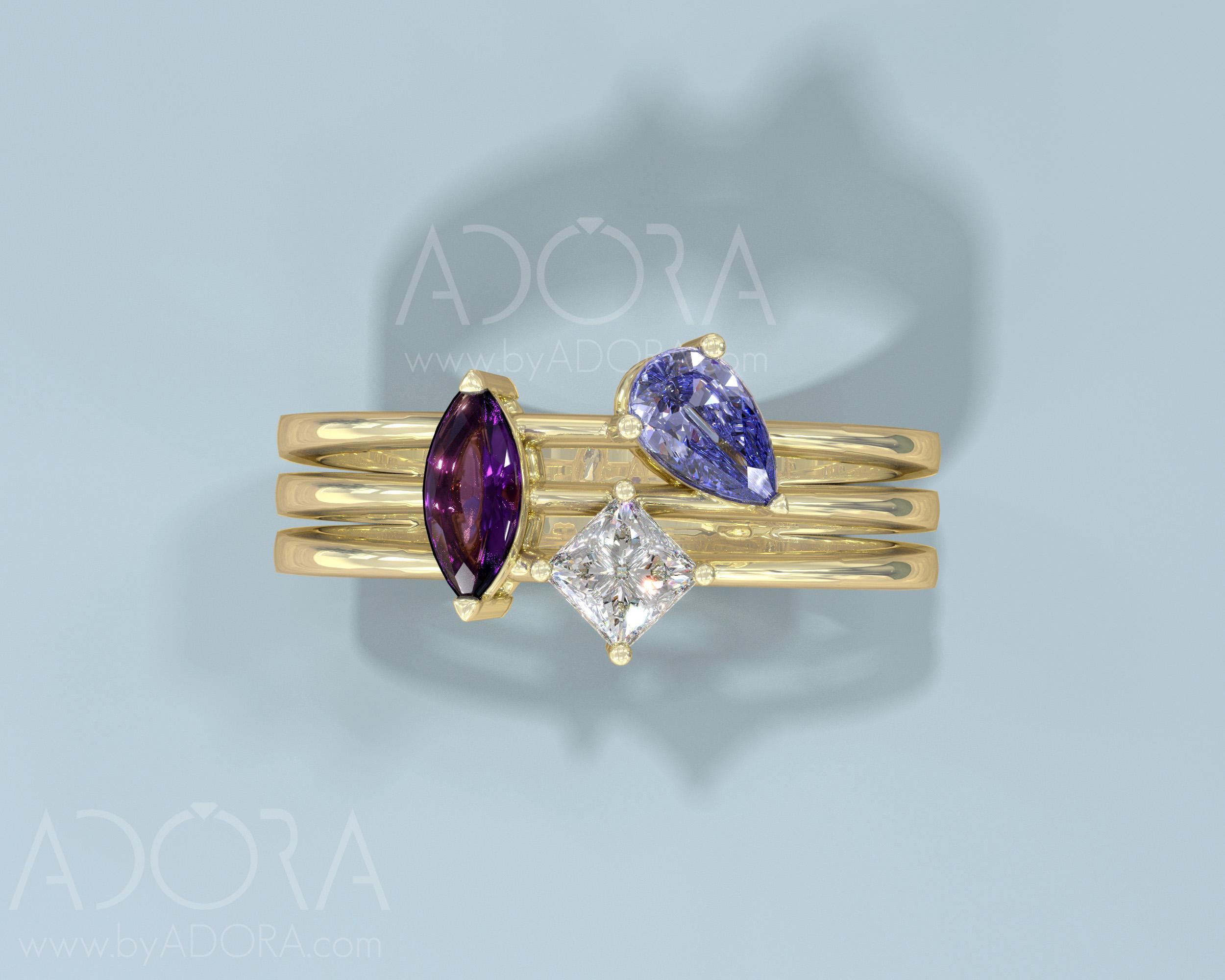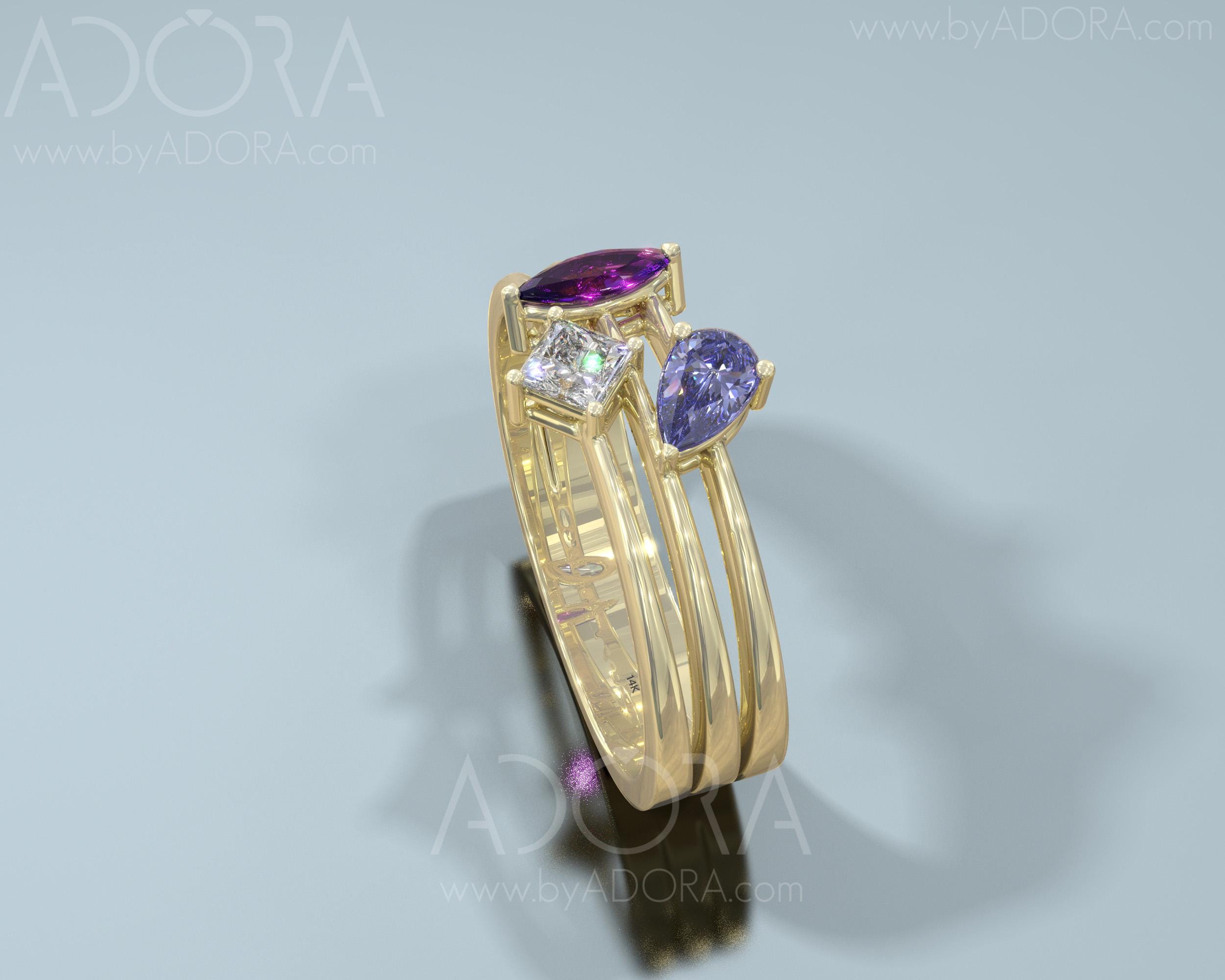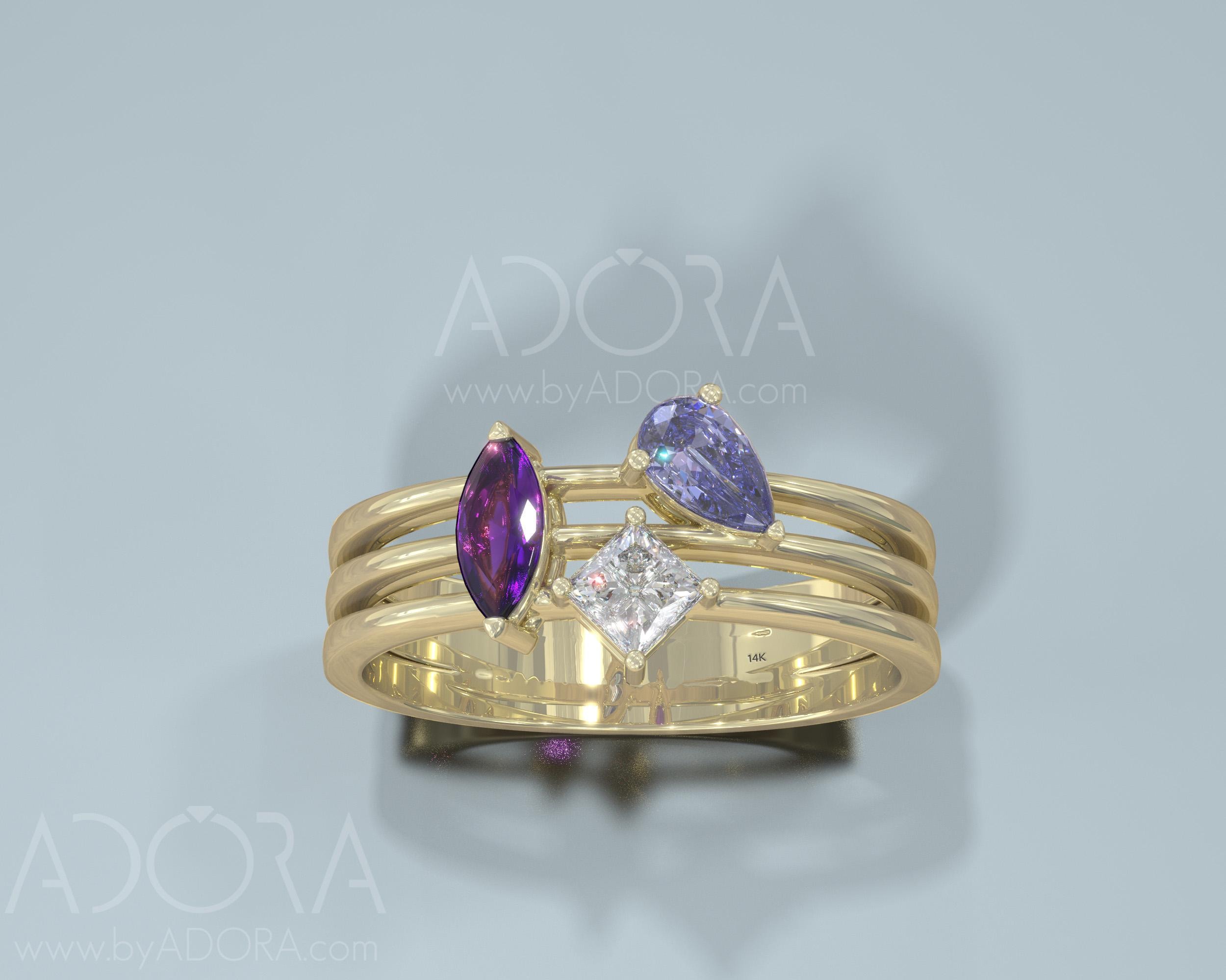 ✧ I will set the ring with 3 gems in a delicate bezel setting: