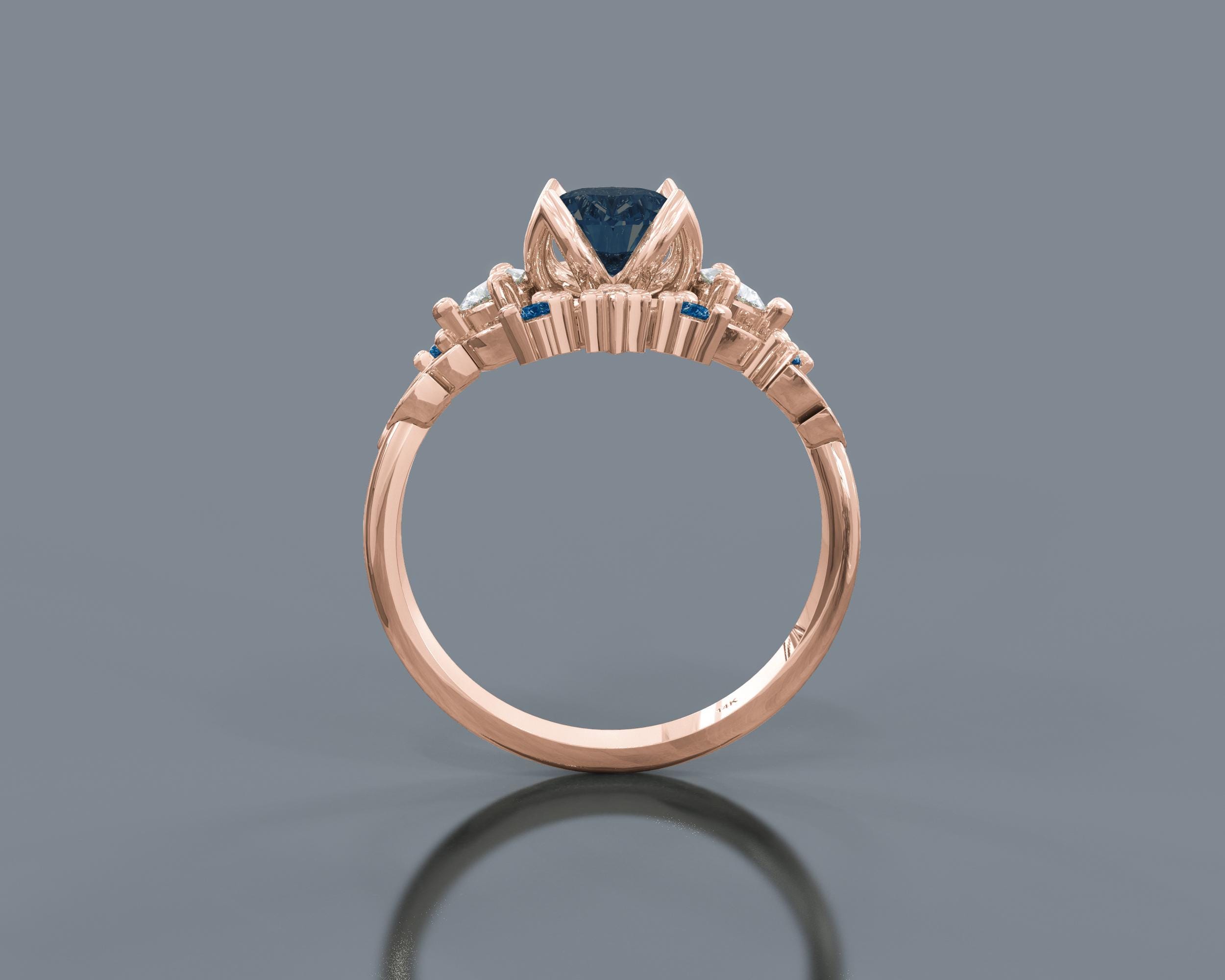 Briar Rose Three Stone Blue Sapphire Flower Engagement Ring | 10K 14K 18K Solid Rose Gold Blue Sapphire Band